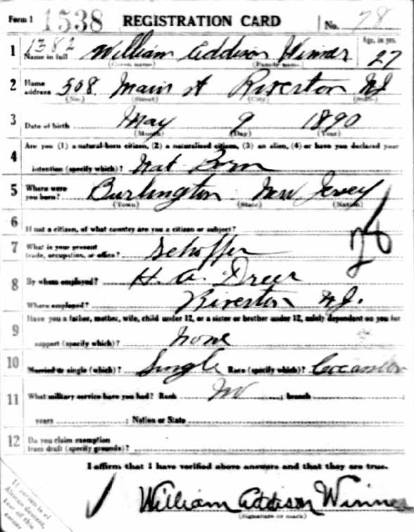 WILLIAM ADDISON WINNER was born in Burlington, New Jersey on May 29,