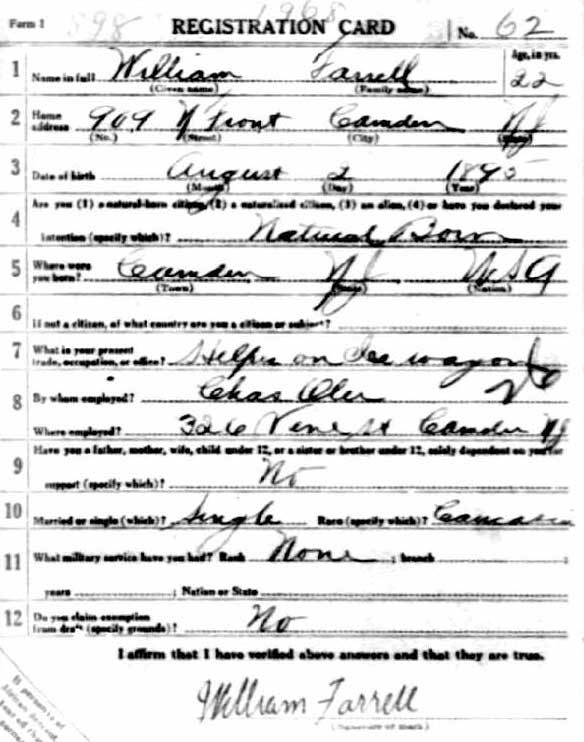 was born in Camden NJ on August 2, 1895. When the Census was taken in
