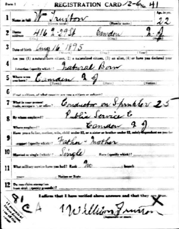 for the draft on June 5, 1917. William Truxton later moved to 121