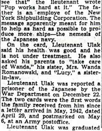 LIEUTENANT ULAK LISTED JAP PRISONER IN PHILIPPINES BATTLE Camden Mother