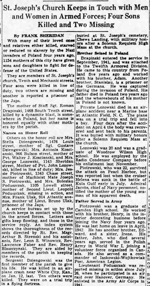 RETURN TO CAMDEN NJ St. Joseph Parish WWII MEMORIAL