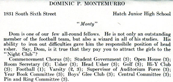 Dominic P. Montemurro - Woodrow Wilson 1935 High School Yearbook |