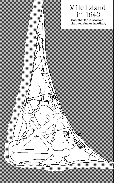 The Mili airbase. In the late 1930s Japan began to fortify its Marshallese possessions contrary to the Covenant of the League of Nations. These fortifications were centered on Kwajalein, Maloelap and Wotje. Any development of Mile Atoll, however, was not part in the grand strategic scheme. Mili during World War II. However, as the base was begun very late in the war, when Japanese resources were being stretched and when Japanese shipping was under attack by U.S. submarines, the base development is characterized by a relative absence of large concrete structures, such as command buildings, power stations or bunkers. In a very short time, between late 1942 and late 1943, the Japanese had constructed an airfield with three runways (4750', 4550' + 4400'), two hangars and a service apron. By end of 1943 there were also several hundred buildings, mainly of wooden construction, a wooden pier and several repair shops. There was one radar set (range 50 miles) on island, giving the air wing some 10 minutes warning. During the war two squadrons of planes were temporarily stationed here many of which were destroyed on the ground. A large number of plane wrecks, mainly Zero-fighters (Mitsubishi A6M) and Betty-bombers (Mitsubishi G3M) are scattered about on the island. The perimeter of the island, especially the ocean side, bristled with guns, which were a mixture of British and Japanese manufacture: 8 6" and 3 14cm coastal defense guns, 4 127mm dual purpose guns, 2 10cm mortars, 35 heavy and over 70 light anti-aircraft guns as well as an assortment of small guns. Between mid-1943 and Aug. 1945, the US aircraft dropped 3350t bombs and US ships shot 450t shells onto Taroa. While the first attacks were carried-based and irregular, daily attacks were started after Majuro and Kwajalein had fallen to the US. At the same time, all supply lines to Mili were cut off, and the Japanese garrison was left to starve. Of the originally 5100 strong Japanese garrison (2600 Navy, 2500 Army,) only 2500 (50%) survived. Casualties occurred from air raids, diseases, accidents, and suicides, but mainly from starvation.