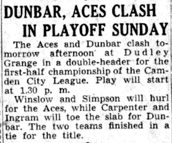 Outslugging Twelfth Ward, Campbell�s Soup went into a tie for first place in the American Division of the Kobus Twilight League when it defeated the "Warders" 12 to 8 at Dudley Grange Park in one of four games played last night. In another American Division tussle, St. Joseph's Polish soundly trounced the Polish American Citizens Club, 13 to 1 at Broadway and Everett street. In a pair of National Division tussles, the Walker Robins gained a firmer grip on second place when it whipped Sacred Heart at the Fairview Ball Park, 13 to 1 and Lincoln took the measure of St. Joan of Arc at Seventh and Jefferson by the score of 5 to 1. Pitchers in the Campbell's-Twelfth Ward fracas took a beating with the "Soupmen" collecting 13 blows off Mike Huggard and Martin, while the "Warders" slapped Norm Young for 11 safeties. Campbell's lost no time in putting the game away, tallying seven runs in the first inning and then added one in the third and two in the fourth to clinch the verdict. The "Warders" tried hard to overcome the lead and in the sixth session put on a rally which netted five runs. Gresk was the hitting star for Campell�s, rapping a pair of singles and a home run, while Herb Dunn sparkled at the plate for the Warders with three for four. The polish-americans were no match for St. Joe's Polish, Jim Stubbs setting down the former outfit without much trouble, giving up but six hits. St. Joe's on the other hand rapped T. Martin and Huston for 19 wallops with Stubbs and Gray pacing the offense, each getting four hits. Walt Nowak also hit hard, getting three for four. Galecki was the only polish-american who could solve Stubb's offerings, smacking three singles. The Walker Robins also had little difficulty with Sacred Heart, scoring in each of the six innings with the exception of the fourth. Carpenter worked on the hill for the Robins and set down his foe with only two hits, while his mates clubbed Phillips, Rudolph and Savich for 11 bingles. Warren, Jones and Carpenter led the attack with two hits apiece. Sacred Heart's lone run came on a homer by Cianfrani in the second inning. Two runs in the first and three in the eighth spelled victory for Lincoln over St. Joan of Arc. Schoekolf went the route for Lincoln and spaced out eight hits, the Saints' lone run coming in the third on a homer by Gondolf. Lincoln collected eight hits off Franks and Collins with Lyback and J. Schramm each getting two.