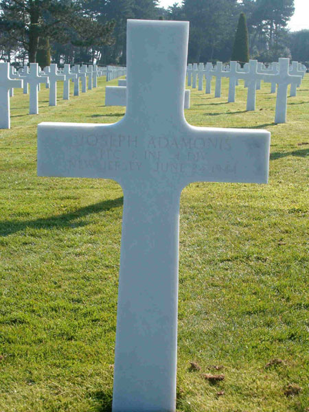 PRIVATE FIRST CLASS JOSEPH A. ADAMONIS was born in 1922 in Pennsylvania to parents who had come to the USA from what was then Lithuania. His father worked as a coal miner. The family lived in the late 1920s and early 1930s in Schuylkill County, Pennsylvania, in a town called Norwegian. By April of 1930 Joseph Adamonis' parents had divorced. He lived with his father, older sister Eva, and older brothers Albert, Frederick, and Frank. Joseph Adamonis had a grammar school education prior to entering the workforce. By 1941 he had moved to New Jersey, making his home with his sister, Eva Barowsky, at 1185 Jackson Street in Camden. Brothers Albert and Frederick would also relocate to South Jersey. Inducted into the United States Army on December 11, 1942 at Camden, he trained with the 8th Infantry Regiment, 4th infantry Division. The 8th Infantry Regiment of the 4th Division was one of the first Allied units to hit the beaches at Normandy on D-day, 6 June 1944. Relieving the isolated 82d Airborne Division at Ste. Mere Eglise, the 4th cleared the Cotentin peninsula and took part in the capture of Cherbourg, on June 25. Private First Class Adamonis was killed in action during the fighting at Cherbourg, France of June 24, 1944. His death was reported in the August 4th edition of the Camden NJ Courier-Post. The Adamonis family remained in Camden through at least the early 1970s. His sister Eva Adamonis Barowsky was active for many years with the Polish American Citizens Club. She passed away in March of 2003, in Blackwood NJ. |