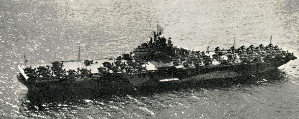 tons Fourth United States vessel of five to be named after the Revolutionary era Fort in upper state New York. A World War II Essex class Fleet aircraft carrier. Was laid down as HANCOCK on February 1,1943 at Newport News, Va. by the Newport News Shipbuilding & Dry Dock Co.. Renamed TICONDEROGA on May 1,1943: Launched February 7,1944; Sponsored by Miss Stephanie Sarah Pell, Commissioned at the Norfolk Navy Yard on May 8,1944, Capt. Dixie Kiefer in command. TICONDEROGA remained at Norfolk for almost two months outfitting and embarking Air Group 80. On June 28,1944, the carrier shaped a course for the British West Indies. She conducted air operations and drills enroute and reached Port of Spain, Trinidad on the 30th. For the next 15 days, TICONDEROGA trained intensively to weld her air group and crew into an efficient wartime team. She departed the West Indies on July 16, 1944 and headed back to Norfolk where she arrived on the 22nd. Eight days later, the carrier headed for Panama. She transited the canal on September 4, 1944 and steamed up the coast to San Diego the following day. On the 13th , the carrier moored at San Diego where she loaded provisions, fuel, aviation gas, and an additional 77 planes, as well as the Marine Corps aviation and defense units that went with them. On September 19th, 1944 she sailed for Hawaii where she arrived five days later. TICONDEROGA remained at Pearl Harbor for almost a month. She and CARINA (AK-74) conducted experiments in the underway transfer of aviation bombs from cargo ship to aircraft carrier. Following those tests, she conducted air operations-day and night landings and antiaircraft defense drills- until October 18 when she exited Pearl Harbor and headed for the western Pacific. After a brief stop at Eniwetok, TICONDEROGA arrived at Ulithi Atoll in the western Carolines on the 29th. There she embarked Rear Admiral Frederick C. Sherman's Task Group (TG) 38.3. The carrier sortied from Ulithi with TF38 on November 2. She joined the other carriers as they resumed their extended air cover for the ground forces capturing Leyte. She launched her first air strike on the morning of the 5th. The planes of her air group spent the next two days pummeling enemy shipping near Luzon and air installations on that island. Her plane bombed and strafed the airfields at Zablan, Mandaluyong, and Pasig. They also joined those of other carriers in sending the heavy cruiser NACHI to a watery resting place. In addition, TICONDEROGA pilots claimed six Japanese aircraft shot down, and one destroyed on the ground, as well as 23 others damaged. Around 1600 on the 5th, the enemy retaliated by sending up a flock of planes piloted by members of the suicide corps dubbed Kamikaze, or "Divine Wind", in honor of the typhoon that had destroyed a Chinese invasion fleet four centuries previously. Two of the suicide plane succeeded in slipping through the American combat air patrol and antiaircraft fire to crash onto LEXINGTON (CV-16). TICONDEROGA emerged from that airborne Banzai charge unscathed and claimed a tally of two splashes. On November 6th, the warship launched two fighter sweeps and two bombing strikes against the Luzon airfields and enemy shipping in the vicinity. Her airmen returned later that day claiming the destruction of 35 Japanese aircraft and attacks on six enemy ships in Manila Bay. After recovering her planes, the carrier retired to the east for a refueling rendezvous. She refueled and received replacement planes on the 7th and then headed back to continue pounding enemy forces in the Philippines. Early on the morning of November 11th, her planes combined with others of TF38 to attack a Japanese reinforcement convoy, just as it was preparing to enter Ormoc Bay from the Camotes sea. Together, the planes accounted for all the enemy transports and four of the seven escorting destroyers. On the 12th and 13th, TICONDEROGA and her sisters launched strikes at Luzon airfields and docks and shipping around Manila. This raid tallied an impressive score: light cruiser KISO; four destroyers, and seven merchant ships. At the conclusion of the raid, TF38 retired eastward for a refueling breather. TICONDEROGA and the rest of TG38.3, however continued east to Ulithi where they arrived on the 17th to replenish, refuel and rearm. On November 22nd,the aircraft carrier departed Ulithi once more and steamed back toward the Philippines. Three days later, she launched air strikes on central Luzon and adjacent waters. Her pilots finished off the heavy cruiser KUMANO, damaged in the battle of Samar. Later, they attacked an enemy convoy about 15 miles southwest of KUMANO's not-so-safe haven in Dasol Bay. Of this convoy, Cruiser YASOSHIMA, a merchantman and three landing ships went to the bottom. TICONDEROGA's air group rounded out their day of destruction with an aerial rampage which cost the Japanese 15 planes shot down and 11 destroyed on the ground. While her air group busily pounded the Japanese, TICONDEROGA's Ships's company also made their presence felt. Just after noon, a torpedo launched by an enemy plane broached in LANGLEY's (CVL-27) wake to announce the approach of an air raid. TICONDEROGA's gunners raced to their battle stations as the raiders made both conventional and suicide attacks on the task group. Her sister ship ESSEX (CV-9) erupted in flames when one of the kamikazes crashed into her. When a second suicide plane tried to finish off the stricken carrier, TICONDEROGA's gunners joined those firing from other ships in cutting his approach abruptly short. That afternoon, while damage control parties dressed ESSEX's wound, TICONDEROGA extended her hospitality to that damaged carriers homeless airmen as well as to INTREPID (CV-11) pilots in similar straits. The following day, TF38 retired to the east. TF38 stood out of Ulithi again on December 11th and headed for the Philippines. TICONDEROGA arrived at the launch point early in the afternoon of the 13th and sent her planes al