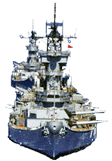 The second South Dakota (BB-57) was laid down on 5 July 1939 at Camden, NJ, by the New York Shipbuilding Corp.; launched on 7 June 1941; sponsored by Mrs. Harlan J. Bushfield; and commissioned on 20 March 1942, Capt. Thomas L. Gatch in command. After fitting out at Philadelphia, South Dakota held shakedown training from 3 June to 26 July 1942. She stood out of Philadelphia Navy Yard on 16 August and headed for Panama. The battleship transited the Panama Canal on 21 August and set course for the Tonga Islands, arriving at Nukualofa, Tongatabu, on 4 September. Two days later, she struck an uncharted coral pinnacle in Lahai Passage and suffered extensive damage to her hull. On 12 September, the ship sailed for the Pearl Harbor Navy Yard and repairs. South Dakota was ready for sea again on 12 October 1942 and began training with Task Force (TF) 16 which was built around aircraft carrier USS Enterprise (CV-6). The task force sortied from Pearl Harbor on 16 October to join TF 17, which was centered on carrier USS Hornet (CV-8), northeast of Espiritu Santo. The rendezvous was made on the 24th; and the combined force, now operating as TF 61 under Rear Admiral T. C. Kinkaid, was ordered to make a sweep of the Santa Cruz Islands and then move southwest to block any Japanese forces approaching Guadalcanal. Catalina patrol bombers sighted a Japanese carrier force at noon on October 25, 1942, and TF 61 steamed northwest to intercept it. Early the next morning, when all carrier forces were within striking range, a Japanese snooper spotted the American force, triggering the Battle of Santa Cruz. South Dakota and the Enterprise group were approximately 10 miles from the Hornet group when the air battle began. The first enemy attack was concentrated against Hornet . At 1045, South Dakota was operating near Enterprise to provide protective fire from her numerous antiaircraft guns when their group was attacked by dive bombers. Approximately an hour later, about 40 torpedo planes struck at the two ships. A third aerial assault, made by dive bombers and torpedo planes, came in at 1230. South Dakota sustained a 500-pound bomb hit on top of her number one turret. When the action was broken off that evening, the American forces retired toward Noumea, New Caledonia, with the battleship credited with downing 26 enemy planes. At 0414 on 30 October, while avoiding a submarine contact, South Dakota and USS Mahan (DD-364) collided, causing damage to both ships. Mahan 's bow was turned to port and crumpled to frame 14, and a fire, soon brought under control, started in her forward hold. Both ships continued to Noumea where USS Vestal (AR-4) repaired South Dakota 's collision and battle damage. On 11 November 1942, South Dakota , as part of TF 16, sortied from Noumea for Guadalcanal. On 13 November, she joined battleship USS Washington (BB-56) and destroyers USS Preston (DD-379), USS Walke (DD- 418), USS Benham (DD-397), and USS Gwin (DD-433) to form TF 64 under command of Rear Admiral W. A. Lee. The next evening at 2330, the force was operating 50 miles southwest of Guadalcanal when Lee learned that an enemy convoy was coming through the passage off Savo sometime between 0030 and 0230. This was Admiral Kondo's bombardment group consisting of the battleship Kirishima ; heavy cruisers Takao and Atago ; and a destroyer screen. Admiral Kondo's forces were divided into three sections: the bombardment group; a close screen of cruiser Nagara and six destroyers; and a distant screen of cruiser Sendai and three destroyers in the van of the other forces. A quarter moon assured good visibility. Three ships were visually sighted from the bridge of South Dakota , range 18,100 yards. Washington fired on the leading ship, thought to be a battleship or heavy cruiser; and, a minute later, South Dakota 's main battery opened on the ship nearest to her. Both initial salvos started fires on the targets. South Dakota then fired on another target and continued firing until it disappeared from her radar screen. Turret No. 3 � firing over her stern and demolishing her own planes in the process � opened on another target and continued firing until the target was thought to sink. Her secondary batteries were firing at eight destroyers close to the shore of Savo Island. A short lull followed after which radar plot showed four enemy ships, just clear of the left tangent of Savo, approaching from the starboard bow; range 5,800 yards. Searchlights from the second ship in the enemy column illuminated South Dakota . Washington opened with her main battery on the leading, and largest, Japanese ship. South Dakota 's secondary batteries put out the lights; and she shifted all batteries to bear on the third ship, believed to be a cruiser, which soon gushed smoke. South Dakota , which had been under fire from at least three of the ships, had taken 42 hits which caused considerable damage. Her radio communications failed; radar plot was demolished; three fire control radars were damaged; there was a fire in her foremast; and she had lost track of Washington . As she was no longer receiving enemy fire and there were no remaining targets, she withdrew; met Washington at a prearranged rendezvous; and proceeded to Noumea. Of the American destroyers, only Gwin returned to port. The other three had been severely damaged early in the engagement. Walke and Preston were sunk. Benham had part of her bow blown off by a torpedo and, while en route to Noumea with the damaged Gwin as her escort, had to be abandoned. Gwin then sank her by gunfire. On the enemy side, hits had been scored on Takao and Atago ; Kirishima and destroyer Ayanami , severely damaged by gunfire, were abandoned and scuttled. |