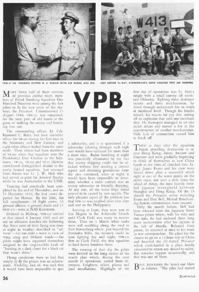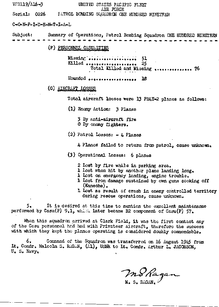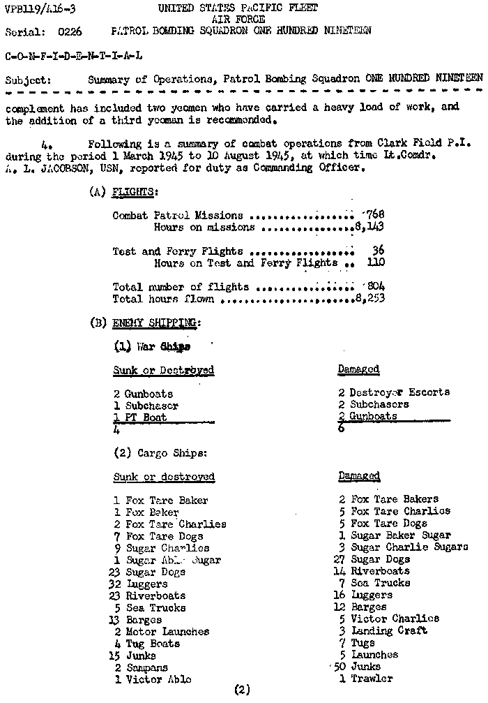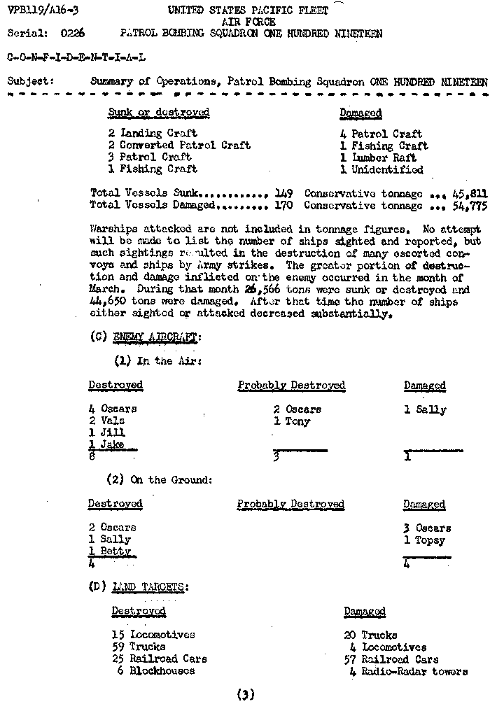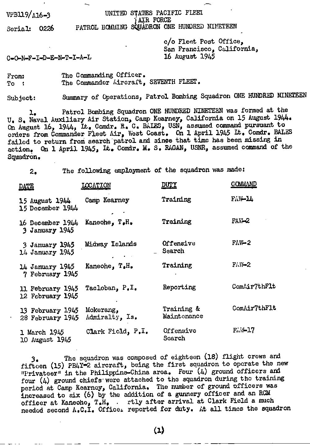 of Operations Patrol Bombing Squadron One Hundred Nineteen August 15, 1944 - August 16, 1945 |