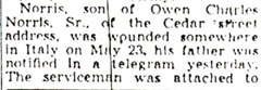 MYRTILE FRANK NORRIS was the son of Owen Charles Norris of 422 Cedar