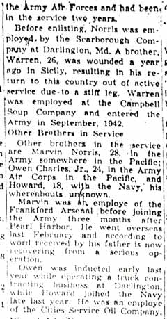 Norris was survived by his father, Owen Charles Norris, a sister, Edith