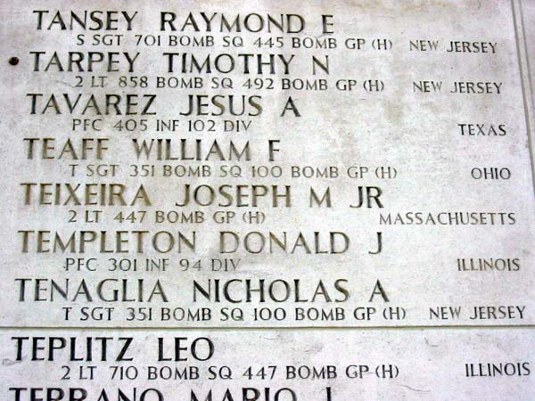 | T/Sgt | Nicholas A. Tenaglia | TTE | KIA | 11-Dec-43 | Emden |