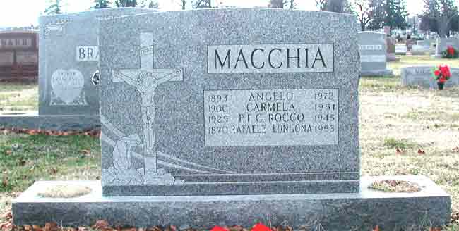 PRIVATE FIRST CLASS ROCCO MACCHIA was born October 10, 1925 to Angelo and Carmela "Millie" Macchia. He lived at 241 Chestnut Street in Camden NJ. Rocco Macchia was a February 1944 graduate of Camden High School's Business Education course. Other members of his graduating class included future Chief of Police Douglas Holmes, political figure Charles Ashley, and Joseph Mangold, who also served in Camden's police force. Another classmate, Samuel T. Goudelock, was killed in action in Korea in April of 1953. Rocco Macchia was remembered in his high school yearbook:
