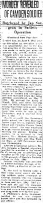 Private William Bovell Jr. died while a prisoner of the Japanese on June 16, 1942 at a prison camp in the Philippines. Several other Camden County men met similar fates while prisoners. To learn more of what happened to William Bovell Jr. and his comrades, read the outline below, and click on the links provided. |