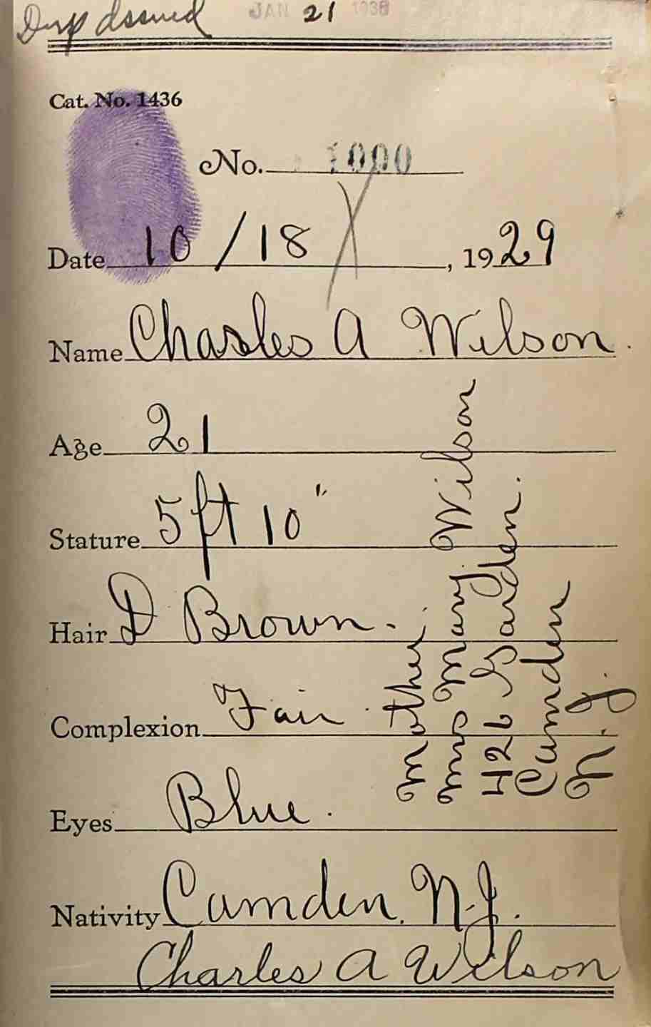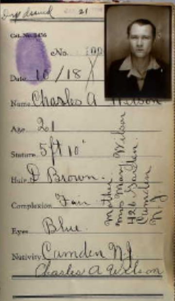 CHARLES A. WILSON was born in New Jersey, the son of Richard and Mary Wilson. Richard and Mary Wilson married around 1899. The family first appears in Camden city directories in 1907, at 2016 Cooper Street in East Camden. Richard Wilson worked for the Pennsylvania Rail Road as a car inspector in the nearby Pavonia rail yards. The 1910 Census shows that Mary had given birth to three children, two of whom were living, Mary 8, and Richard, 5. Both were born in Pennsylvania. The Wilson family stayed at 2016 Cooper Street as late as 1911. The 1912 City Directory shows the family at 426 Garden Avenue. This would remain the family home as late as October of 1969 and most likely a few years later, the home finally being sold in May of 1977. The 1920 Census, taken on January 21 of that year, shows Charles Wilson, aged 8, which makes his probable year of birth as 1911. His father was still working for the railroad, while elder sister Mary had found work as a telephone switchboard operator. Both of the Wilson boys went to sea during the 1920s, although Charles lied about his age at least once, in 1928, pursuing that trade, as evidence by his applications for his Seaman's Protection Certificate, a document that served as a seamen's passport, and was issued at all ocean and Great Lakes ports by the collector of customs or his deputy, usually in his capacity as shipping commissioner. Charles Wilson applied for his at Houston, Texas and the most likely reason for this is that he had sailed out of Philadelphia on an oil tanker. Many such ships traveled the routes from the Gulf of Mexico bringing crude oil to the refineries on Philadelphia and on Petty's Island. During the 1930s Charles Wilson's mother passed away and his brother had left the sea, although he kept his hand in, working as a radio operator for one of the oil refineries in Camden or Philadelphia. The 1940 Census shows that Charles A. Wilson was still working as a merchant seaman. His father appears to have passed away not long after the 1940 Census. Charles A. Wilson appears to have died while serving with the United States Merchant Marine during World War II. He is memorialized on the War Memorial in front of the Highland Fire Company, in Marlton Pike in Pennsauken NJ. |