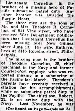 Thomas Cornelius, serving in the United States Navy, had been lost
