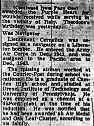 KENNETH CORNELIUS was born in New Jersey on December 16, 1919 to