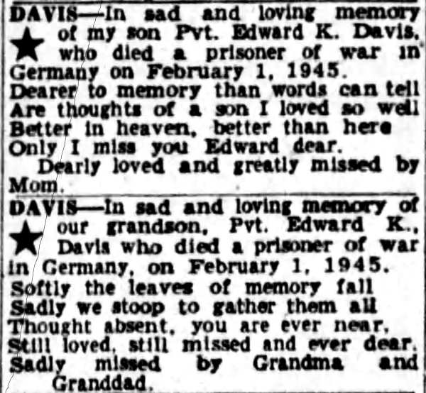 COURIER-POST CAMDEN N.J., MARCH 12, 1945 Soldier Dies In Nazi Prison After Capture Pennsauken Private Was Father of Son He Never Saw