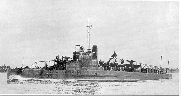 USS PE-56 Eagle Class Patrol Craft : Laid down at the Ford Motor Co., Rouge Plant, Detroit, Mich., 25 March 1919; Launched, 15 August 1919; Commissioned USS Eagle Boat No. 56, 26 October 1919; Redesignated USS PE-56, 17 July 1920; Torpedoed by the German submarine U-853, 23 April 1945 off Portland, ME. Specifications : Displacement 615 t.; Length 200' 9"; Beam 33' 1"; Draft 8' 6"; Speed 18.3kts; Complement 61; Armament two 4"/50 gun mounts, one 3"/50 gun mount, two .50 cal. machine guns; Propulsion two Bureau Express boilers, Poole geared turbine, one shaft. |
