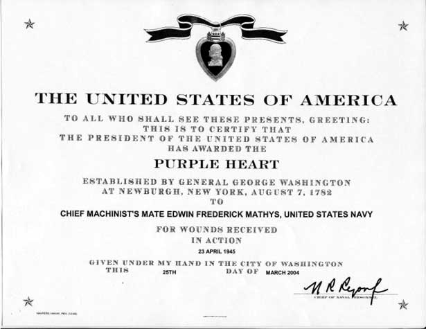 March 24, 2004 - The Purple Heart Citation |
