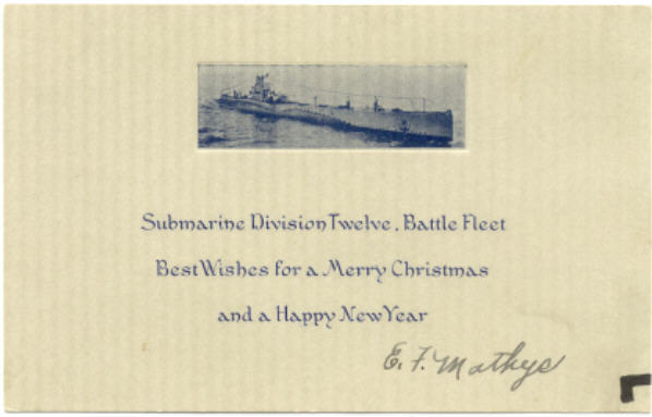 Edwin Frederick Mathys enlisted in the United States Navy in 1922. For the greater part of his career, he served aboard submarines.