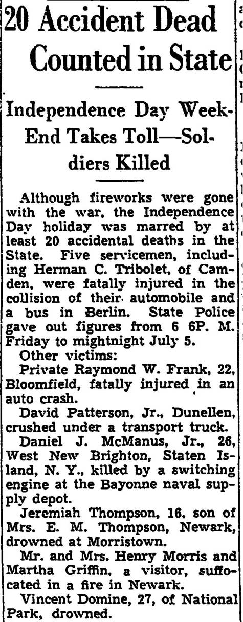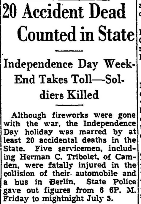 struck by a bus at Berlin NJ. All five soldiers were killed in the