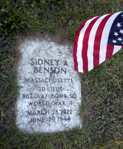 SECOND LIEUTENANT SIDNEY A. BENSON was the son of Harry O. and Mary B. Benson. Sidney Benson grew up in Marblehead MA, where his parents lived at 34 Marion Road in 1930. He was a graduate of Marblehead High School. He was attending college at Duke University in North Carolina when he entered the United States Army in 1943. Qualifying for duty in the Army Air Force, he was trained as a pilot, and was reported as being commissioned as a Second Lieutenant on December 13, 1943 at Seymour IN. On April 25, 1944 he wrote a letter to a group back home in Marblehead, which was printed in the MARBLEHEAD MESSENGER, an eight page weekly paper.. Tuesday, April 25th Marblehead Live Wire Committee Dear Sirs: I want to thank you for the Messenger as it is greatly appreciated. There isn�t much of this country I haven�t seen during the last year and a half, but the further I go and the more I see, the surer I am there is no place like Marblehead. I�m piloting a �Liberator� and will be out of the �States� by the time you receive this note. Thanking you again, and hoping I can get the �Messenger� �Over there.� Sincerely, Lt. Sidney A. Benson This is a letter from Benson to a group in town called the Live Wire Committee that was published in the Messenger. The Committee�s purpose was to support Marblehead residents in the service. They did this by giving each service man and woman from town an annual subscription to the Messenger and a five-dollar check at Christmas. In turn, those in the service would write a thank you note via the paper. It was a column titled �Letters from the Boys� and typically took up half of page three of the paper. As you can see, Benson, himself says he is flying a B-24.- Sean Casey, December 2002 Lt. Benson and his crew went overseas shortly thereafter and were assigned to the 862nd Bomber Squadron, 493rd Bomber Group, Heavy. They were stationed at Station 152, Debach, Suffolk County, England. The 493rd was the last bomber group deployed to England. The first mission was flown on D-Day, June 6, 1944 to Liseaux, France. The 493rd Bomber group was equipped with B-24H Liberator heavy bombers. One of the B-24s was the LITTLE WARRIOR, serial number 42-94812. Built by Ford, this aircraft was brought to the United Kingdom by the 850th Bomber Squadron, 490th Bomb Group, before being transferred to the 493rd Bomb Group and renamed LITTLE WARRIOR. On the 17th mission, an attack on the aero engine plant at Fallersleben, Germany, on Thursday, June 29th, 1944, Sidney Benson was serving as the co-pilot aboard LITTLE WARRIOR. The Missing Air Crew Report (MACR 6721) reads as follows: "Aircraft No. 812 flying in the Number 3 position in A group received a direct flak hit near No. 3 Engine at 0939 hours in the target area just after bombs away. it was enveloped in flames from the nose to the rear of the bomb bays. It fell out of formation and disintegrated at about 10, 000 feet." Eight of the crew were found dead on the ground by German authorities that morning, a ninth body was found later. The co-pilot, 2nd Lieutenant Sidney A. Benson of Marblehead MA was captured. Lt. Benson was murdered by being beaten to death by German Air Raid Wardens shortly after he surrendered that morning. He died late that night after having been thrown first into a garage across from the hospital then into the TB ward. It was only in his last few minutes of life that he received any type of medical care. His killers were later located, tried, and imprisoned. The tenth crewmember's body was discovered in a field, badly burned on July 11, 1944, and buried with the rest of the crew of LITTLE WARRIOR. Sidney Benson was reported missing in the Marblehead Messenger on July 13, 1944, and reported as killed in action in the same paper on October 5th. He was survived by his parents, and a sister, Harriet. His body was brought home to the United States after the war, and he was buried in Massachusetts. |