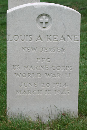 PRIVATE FIRST CLASS LOUIS A. KEANE was born on June 20, 1914. He had ties to Audubon and Pennsauken NJ. He was killed in action on March 18, 1945. Louis Keane was survived by his wife Agnes. Mrs. Agnes Keane became a charter member of the Camden County Chapter of the Gold Star Wives of World War II in November of 1947. |