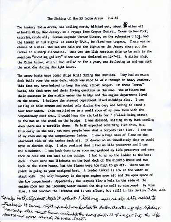 was second mate. Six of us got away on a life raft and after sitting on it