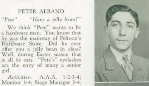 PRIVATE FIRST CLASS PETER J. ALBANO was the son of Nunzio and Rose Albano. The family lived at 20 Taylor Avenue in Audubon NJ. Peter Albano was a 1937 graduate of Audubon High School. He had attended the South Jersey Law School in Camden NJ before entering the Marines in July of 1942. He was activated in July of 1943. Once having gone on active duty, Peter Albano was sent to Princeton University in Princeton NJ where he took part in the Naval V-12 program. Also at Princeton during this time was Augustus D. Whitney of Camden NJ. The South Jersey Law School granted him a diploma in absentia in 1944. Private Albano was sent overseas in October of that year. Attached to Marine Intelligence, Peter Albano was killed in action on Okinawa on April 18, 1945, at the age of 24. His death was reported in the Camden Courier-Post on May 5, 1945. Peter Albano was brought home to New Jersey after the war, and he rests at Harleigh Mausoleum in Camden NJ. Five members of Audubon High School's 1937 graduating class were also lost while serving in America's military during World War II. Besides Peter Albano, the dead include Charles Adamson, george riggin, Edwin Klenk, and Charles Stevenson. |