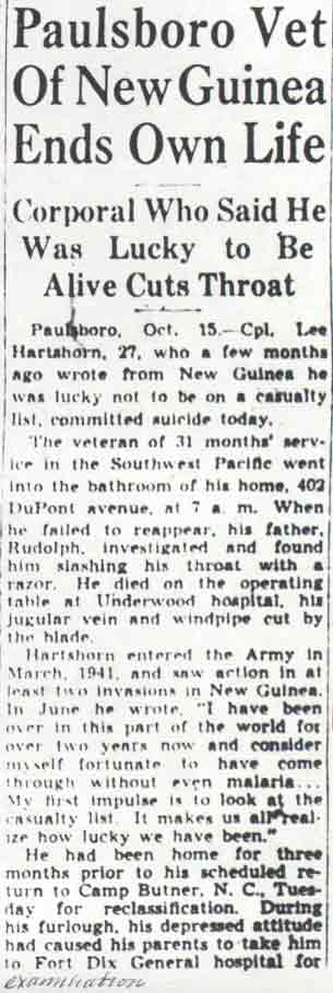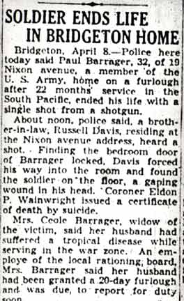 A fourth, a veteran of 22 months duty in the Pacific, had taken his own life as his furlough drew to a close the previous April.
