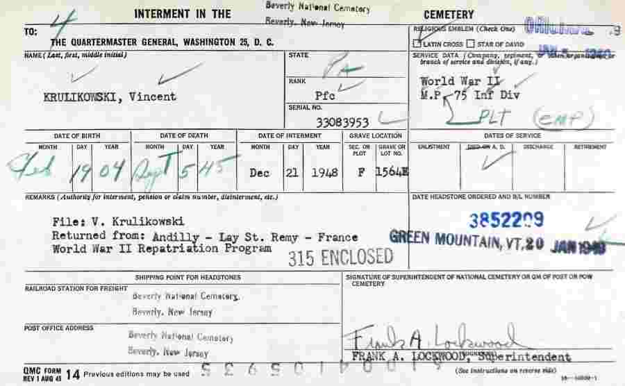 | National Cemetery Interment Form |