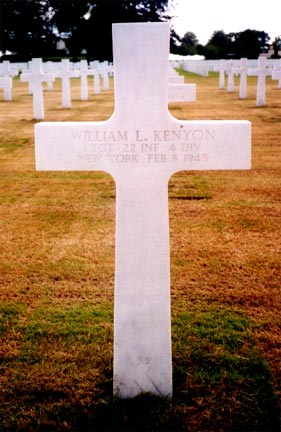 FIRST SERGEANT WILLIAM L. KENYON was inducted into the United States Army shortly after the draft had been re-instituted in the summer of 1940. He was killed in action while serving as a member of the 22nd Infantry Regiment, 4th Infantry Division in February of 1945. |