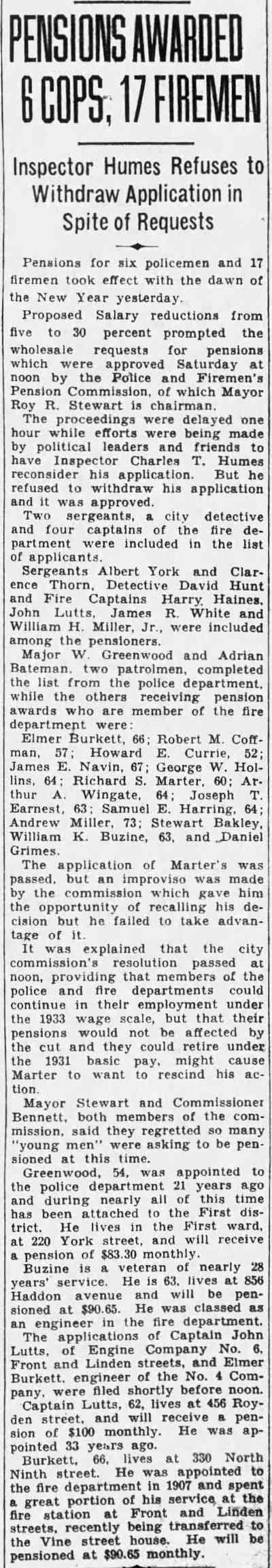 Haines Sr. John Lutts - James R. White - William H. Miller Jr. - Major W. Greenwood - Adrian Bateman Elmer Burkett - Robert M. Coffman - Howard L. Currie - James E. Navin - George W. Hollins Richard S. Marter - Arthur A. Wingate - Joseph F. Ernst - Samuel E. Harring - Andrew "Fritz" Miller Steward Bakley - William K. Buzine - Daniel Grimes - William H. Bennett |