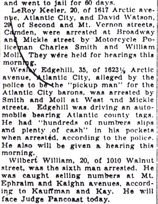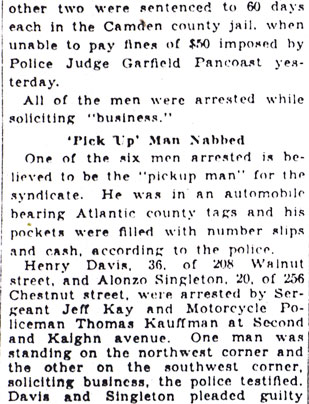 V. Dickinson Jeff Kay- Henry Davis - Thomas Kauffman - Charles Smith William Moll - Alonzo Singleton - David Watson - Wilbert Williams Walnut Street - South 2nd Street - broadway - Mickle Street west street - Mt. Vernon Street - Kaighn Avenue Chestnut Street |