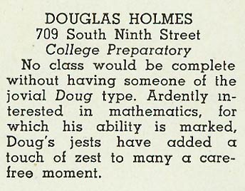 DOUGLAS HOLMES was born in New Jersey around 1927 to Robert and Anna Holmes. At the time of the 1930 Census the family lived at 709 South 9th Street, and the family was still there in 1947. Douglas Holmes was a 1944 graduate of Camden High School, where he took the college preparatory course, and was a member of the football and track teams. Academically he was in the top twenty-five percent of his class. Douglas Holmes joined the Camden Police Department and rose to the post of Chief of Police in the 1980s. Chief Holmes retired in 1986. Chief Holmes passed away on November 12, 2012. |