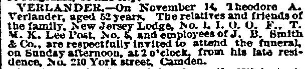 Henry L. "Harry" Hartshorn of 530 Linden Street, a coffee and tea merchant, was a Post 5 member who was Assistant Adjustant General for the New Jersey G.A.R in 1900 |