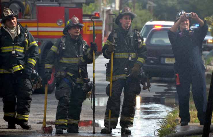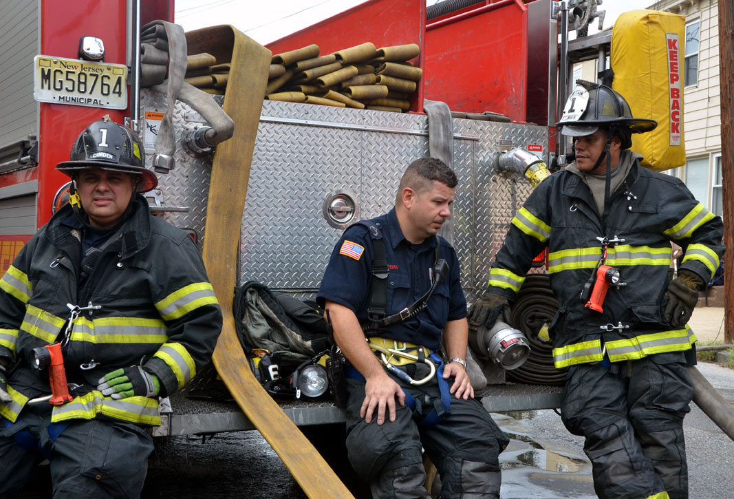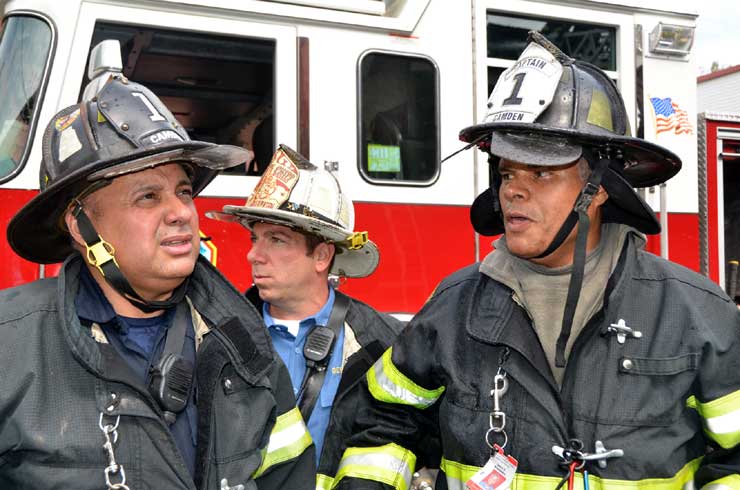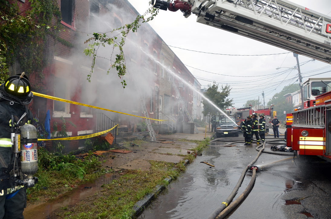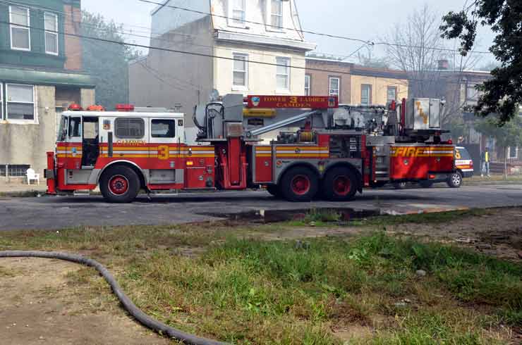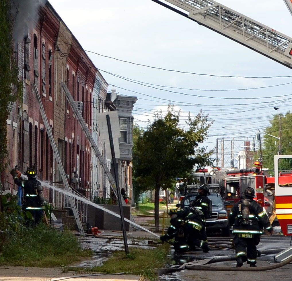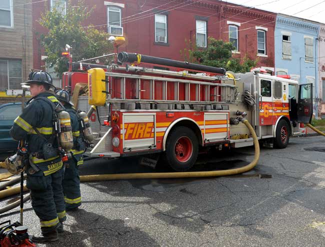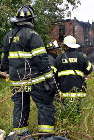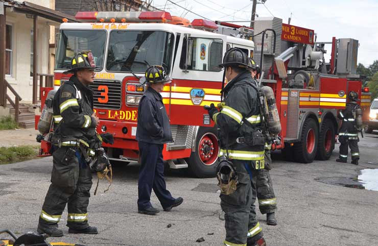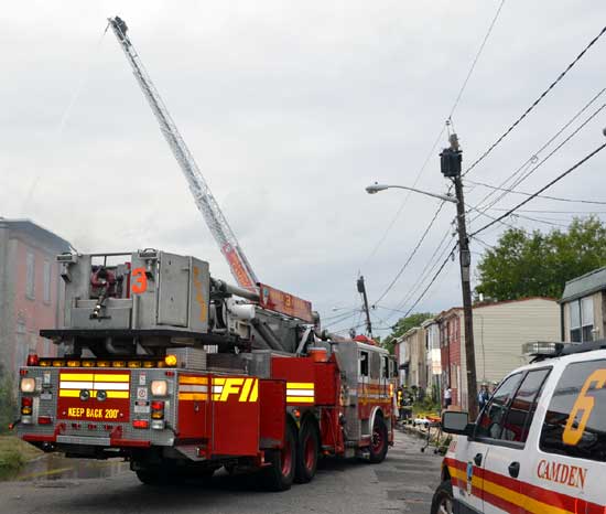 This page and the other pages in this series are the successors to the series of web-page about the Camden Fire Department called Camden Fire Department: The Fires of the Summer of 2011. On this and other pages in the series you will find pictures and information regarding different events and aspects of the fire service in Camden, New Jersey. Monday October 3, 2011 was a very busy day in Camden, with a fire in a vacant rowhouse at 738 Walnut Street going all hands in the ate morning hours. While this was being attended to, several other jobs were reported, requiring companies from surrounding towns to come to the city to lend assistance. Fire Dispatcher Matt DeGailler reported the events. At 1113 hours, companies were dispatched 730 Walnut Street in response to multiple calls for a dwelling fire. The following companies were dispatched, Squad 7, Engine 1, Engine 10 (2nd source company). Ladder 1, Ladder 3, Ladder 2 (Fast Truck), and Battalion 1. Upon arrival it was found that the fire was at 738 Walnut Street. Battalion 1 (Battalion Chief Frank Saia) on location at 1117 hours with a two-story middle of the row dwelling, heavy fire, possibly extending to Bravo and Delta exposures, striking all hands. All hands brought Engine 9 (Resource Company), and Car 3, (Deputy Chief Michael DiPascale). Car 6 (Battalion Chief Don Johnson) also responded. Car 3 struck second alarm at 1133 hours, bringing Engine 11 (acting as Engine 1), Squad 51 from Gloucester City, Ladder 16 from Collingswood, and Car 1 (Camden Chief of Department Michael Harper). At 1139 hours Car 1 reported extension to Bravo and Charlie exposures, numerous handlines stretched and operating, bulk of the fire knocked down, fire now probable will hold. Car 1 placed the fire under control at 1202 hours. During this time numerous mutual aid units operating in city at in response to other incidents during the second alarm. Camden Fire Department Engine 11 (acting as Engine 1) covered a call concerning an illegal electrical hookup at 705 South 3rd Street at 1123 hours. Car 1 and Engine 18-3 from Oaklyn, Squad 51 from Gloucester City, and Ladder 16 from Collingswood were dispatched at 1126 hours to 1995 Ferry Avenue in response to an activated fire alarm. Ladder 16 investigated and recalled from the assignment, which was cause by an accident by workmen o premises. At 1146 hours units were sent to 908 South 3rd Street for a reported basement fire, which was found in the vacant house next door at 910 South 3rd Street. Squad 51 extinguished a small interior rubbish fire, recalled the balance. At 1159 hours, Ladder 18-3 dispatched to was 3225 Mount Ephraim Avenue, the Newton Creek Trailer park, for a report of a malfunctioning heater. At 1210 hours, Engine 11 (acting as Engine 1) was dispatched to Morgan Boulevard in the area of Route 676 for possible smoke in the area. This report was proven to be unfounded. At 1218 hours, Engine 11 (acting as Engine 1), Squad 51, Ladder 16, Ladder 15-1 from Westmont, Ladder 18-3, and Car 1 were dispatched to 1241 Macarthur Drive to cover a reported kitchen fire. Engine 11 (acting as Engine 1) arrived at the address, a one story middle of the row dwelling, with light smoke showing. Battalion 504 from Gloucester City reported a pot of meat, handling by Engine 11 (acting as Engine 1) and Ladder 16 from Collingswood. As with the web page covering other Camden Fire Department events, if you can identify anyone that I've missed, please comment at the bottom of the page. (I'm terrible at at names and faces). September 27 2011 |