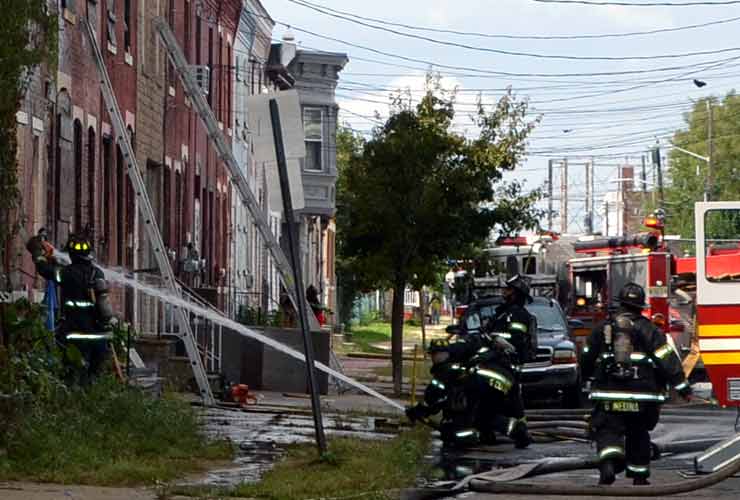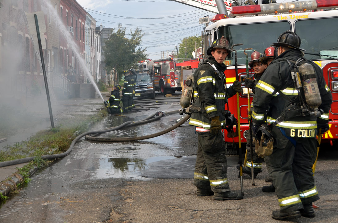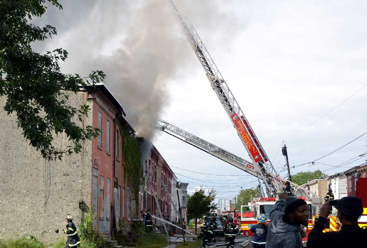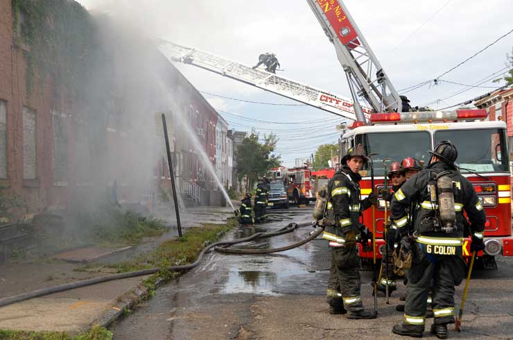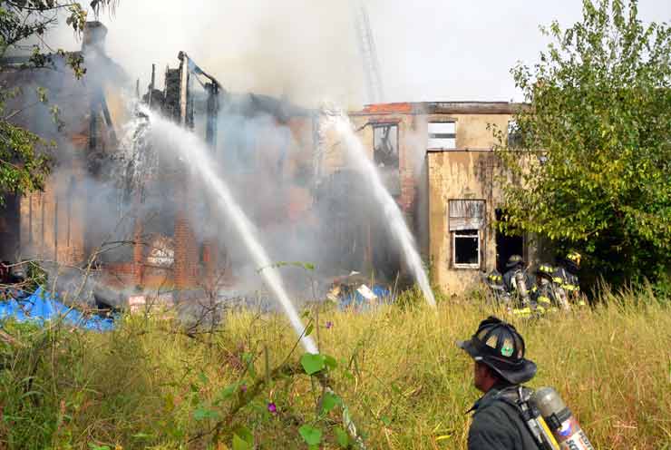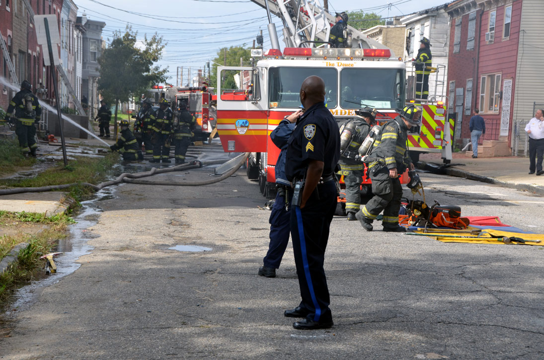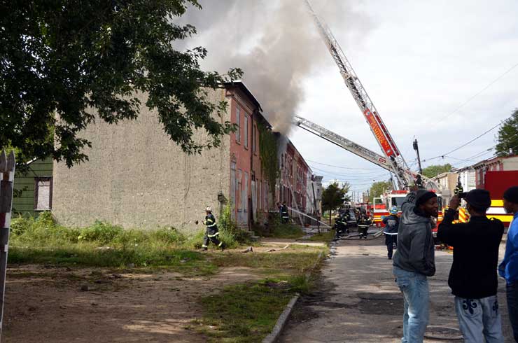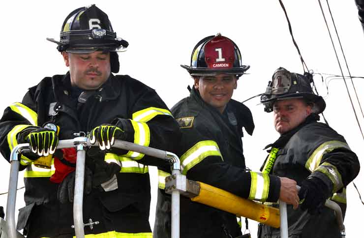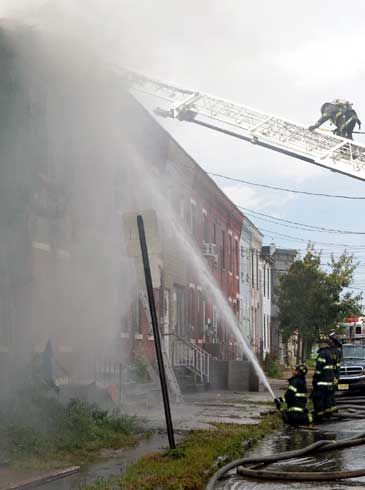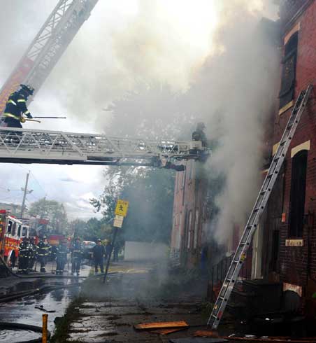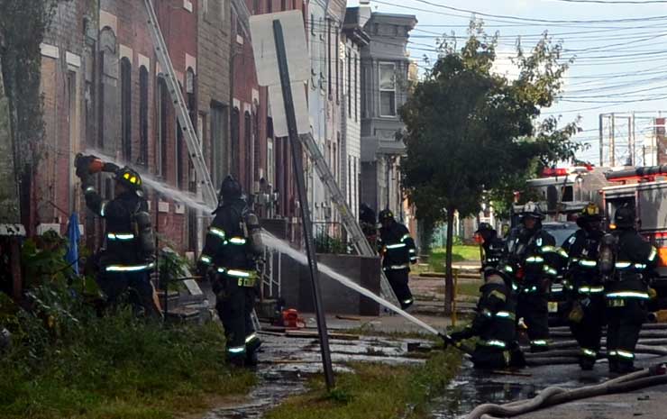 This page and the other pages in this series are the successors to the series of web-page about the Camden Fire Department called Camden Fire Department: The Fires of the Summer of 2011. On this and other pages in the series you will find pictures and information regarding different events and aspects of the fire service in Camden, New Jersey. Monday October 3, 2011 was a very busy day in Camden, with a fire in a vacant rowhouse at 738 Walnut Street going all hands in the ate morning hours. While this was being attended to, several other jobs were reported, requiring companies from surrounding towns to come to the city to lend assistance. Fire Dispatcher Matt DeGailler reported the events. At 1113 hours, companies were dispatched 730 Walnut Street in response to multiple calls for a dwelling fire. The following companies were dispatched, Squad 7, Engine 1, Engine 10 (2nd source company). Ladder 1, Ladder 3, Ladder 2 (Fast Truck), and Battalion 1. Upon arrival it was found that the fire was at 738 Walnut Street. Battalion 1 (Battalion Chief Frank Saia) on location at 1117 hours with a two-story middle of the row dwelling, heavy fire, possibly extending to Bravo and Delta exposures, striking all hands. All hands brought Engine 9 (Resource Company), and Car 3, (Deputy Chief Michael DiPascale). Car 6 (Battalion Chief Don Johnson) also responded. Car 3 struck second alarm at 1133 hours, bringing Engine 11 (acting as Engine 1), Squad 51 from Gloucester City, Ladder 16 from Collingswood, and Car 1 (Camden Chief of Department Michael Harper). At 1139 hours Car 1 reported extension to Bravo and Charlie exposures, numerous handlines stretched and operating, bulk of the fire knocked down, fire now probable will hold. Car 1 placed the fire under control at 1202 hours. During this time numerous mutual aid units operating in city at in response to other incidents during the second alarm. Camden Fire Department Engine 11 (acting as Engine 1) covered a call concerning an illegal electrical hookup at 705 South 3rd Street at 1123 hours. Car 1 and Engine 18-3 from Oaklyn, Squad 51 from Gloucester City, and Ladder 16 from Collingswood were dispatched at 1126 hours to 1995 Ferry Avenue in response to an activated fire alarm. Ladder 16 investigated and recalled from the assignment, which was cause by an accident by workmen o premises. At 1146 hours units were sent to 908 South 3rd Street for a reported basement fire, which was found in the vacant house next door at 910 South 3rd Street. Squad 51 extinguished a small interior rubbish fire, recalled the balance. At 1159 hours, Ladder 18-3 dispatched to was 3225 Mount Ephraim Avenue, the Newton Creek Trailer park, for a report of a malfunctioning heater. At 1210 hours, Engine 11 (acting as Engine 1) was dispatched to Morgan Boulevard in the area of Route 676 for possible smoke in the area. This report was proven to be unfounded. At 1218 hours, Engine 11 (acting as Engine 1), Squad 51, Ladder 16, Ladder 15-1 from Westmont, Ladder 18-3, and Car 1 were dispatched to 1241 Macarthur Drive to cover a reported kitchen fire. Engine 11 (acting as Engine 1) arrived at the address, a one story middle of the row dwelling, with light smoke showing. Battalion 504 from Gloucester City reported a pot of meat, handling by Engine 11 (acting as Engine 1) and Ladder 16 from Collingswood. As with the web page covering other Camden Fire Department events, if you can identify anyone that I've missed, please comment at the bottom of the page. (I'm terrible at at names and faces). September 27 2011 |