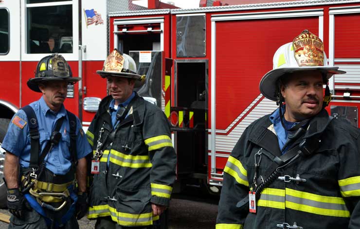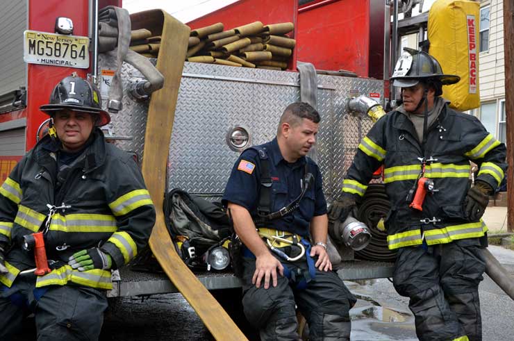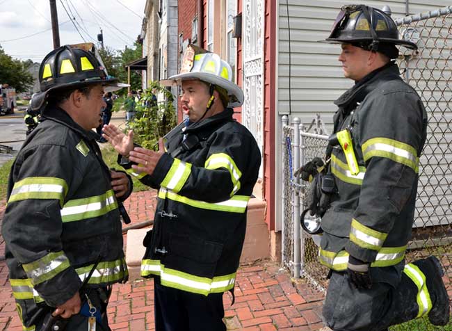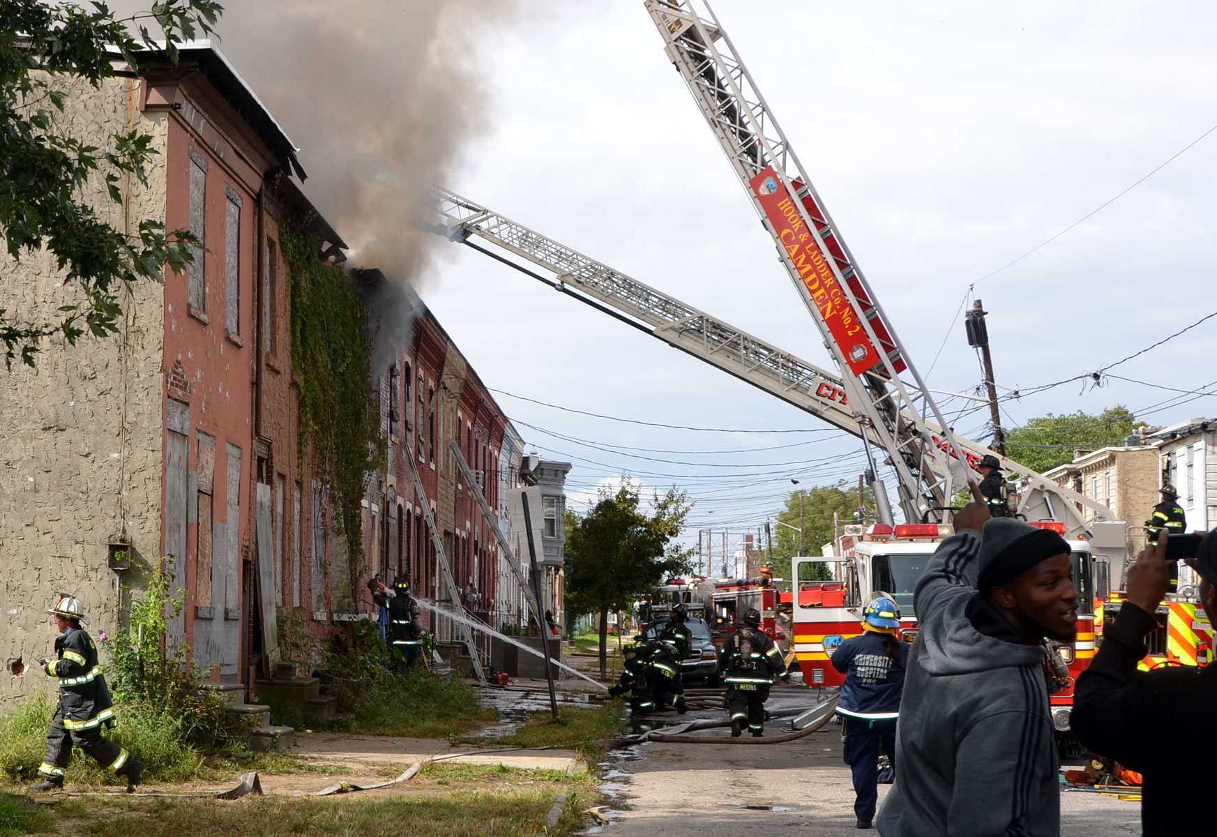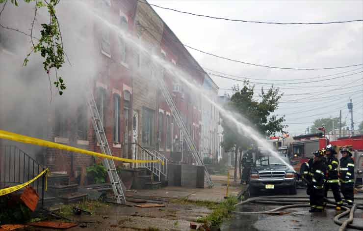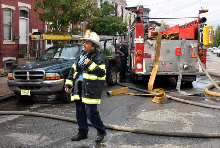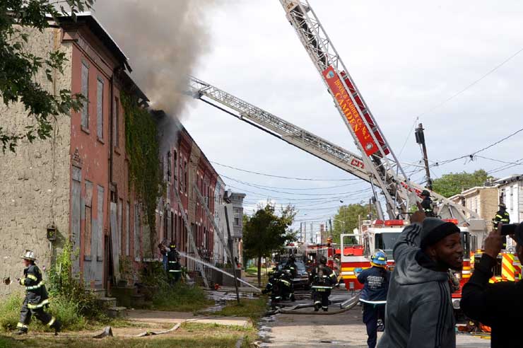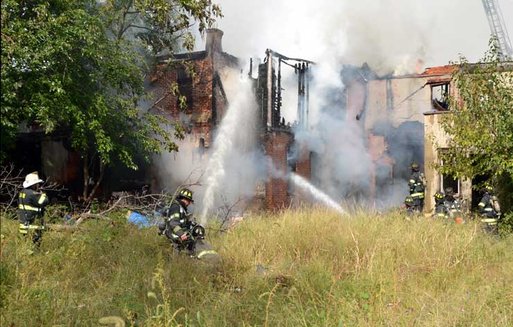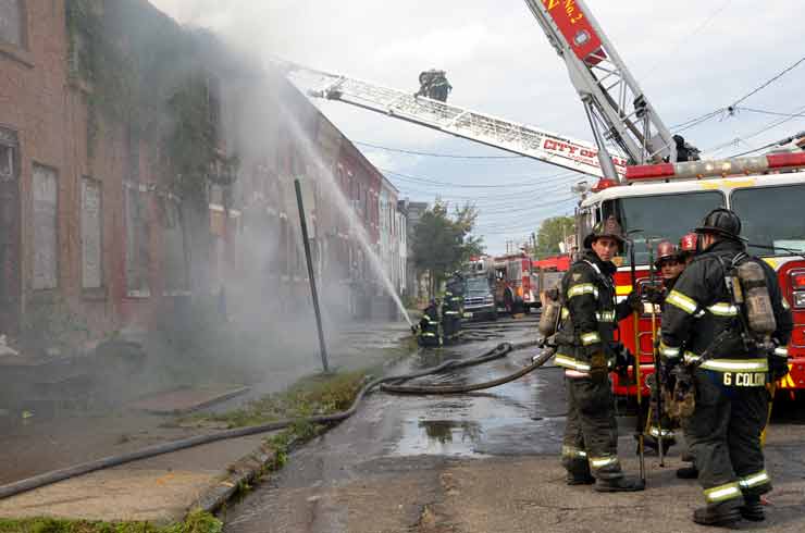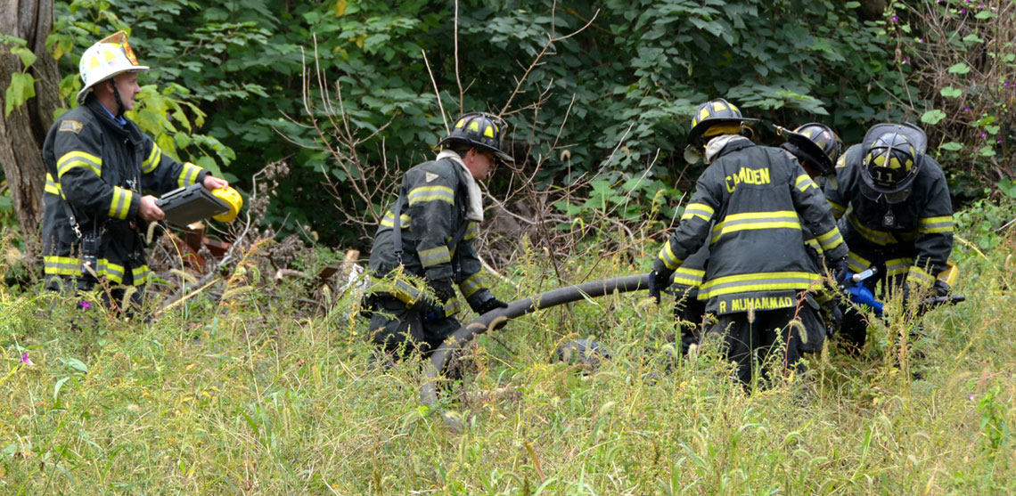 This page and the other pages in this series are the successors to the series of web-page about the Camden Fire Department called Camden Fire Department: The Fires of the Summer of 2011. On this and other pages in the series you will find pictures and information regarding different events and aspects of the fire service in Camden, New Jersey. Monday October 3, 2011 was a very busy day in Camden, with a fire in a vacant rowhouse at 738 Walnut Street going all hands in the ate morning hours. While this was being attended to, several other jobs were reported, requiring companies from surrounding towns to come to the city to lend assistance. Fire Dispatcher Matt DeGailler reported the events. At 1113 hours, companies were dispatched 730 Walnut Street in response to multiple calls for a dwelling fire. The following companies were dispatched, Squad 7, Engine 1, Engine 10 (2nd source company). Ladder 1, Ladder 3, Ladder 2 (Fast Truck), and Battalion 1. Upon arrival it was found that the fire was at 738 Walnut Street. Battalion 1 (Battalion Chief Frank Saia) on location at 1117 hours with a two-story middle of the row dwelling, heavy fire, possibly extending to Bravo and Delta exposures, striking all hands. All hands brought Engine 9 (Resource Company), and Car 3, (Deputy Chief Michael DiPascale). Car 6 (Battalion Chief Don Johnson) also responded. Car 3 struck second alarm at 1133 hours, bringing Engine 11 (acting as Engine 1), Squad 51 from Gloucester City, Ladder 16 from Collingswood, and Car 1 (Camden Chief of Department Michael Harper). At 1139 hours Car 1 reported extension to Bravo and Charlie exposures, numerous handlines stretched and operating, bulk of the fire knocked down, fire now probable will hold. Car 1 placed the fire under control at 1202 hours. During this time numerous mutual aid units operating in city at in response to other incidents during the second alarm. Camden Fire Department Engine 11 (acting as Engine 1) covered a call concerning an illegal electrical hookup at 705 South 3rd Street at 1123 hours. Car 1 and Engine 18-3 from Oaklyn, Squad 51 from Gloucester City, and Ladder 16 from Collingswood were dispatched at 1126 hours to 1995 Ferry Avenue in response to an activated fire alarm. Ladder 16 investigated and recalled from the assignment, which was cause by an accident by workmen o premises. At 1146 hours units were sent to 908 South 3rd Street for a reported basement fire, which was found in the vacant house next door at 910 South 3rd Street. Squad 51 extinguished a small interior rubbish fire, recalled the balance. At 1159 hours, Ladder 18-3 dispatched to was 3225 Mount Ephraim Avenue, the Newton Creek Trailer park, for a report of a malfunctioning heater. At 1210 hours, Engine 11 (acting as Engine 1) was dispatched to Morgan Boulevard in the area of Route 676 for possible smoke in the area. This report was proven to be unfounded. At 1218 hours, Engine 11 (acting as Engine 1), Squad 51, Ladder 16, Ladder 15-1 from Westmont, Ladder 18-3, and Car 1 were dispatched to 1241 Macarthur Drive to cover a reported kitchen fire. Engine 11 (acting as Engine 1) arrived at the address, a one story middle of the row dwelling, with light smoke showing. Battalion 504 from Gloucester City reported a pot of meat, handling by Engine 11 (acting as Engine 1) and Ladder 16 from Collingswood. As with the web page covering other Camden Fire Department events, if you can identify anyone that I've missed, please comment at the bottom of the page. (I'm terrible at at names and faces). September 27 2011 |