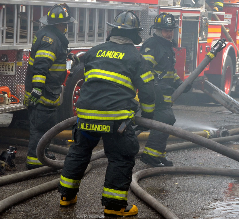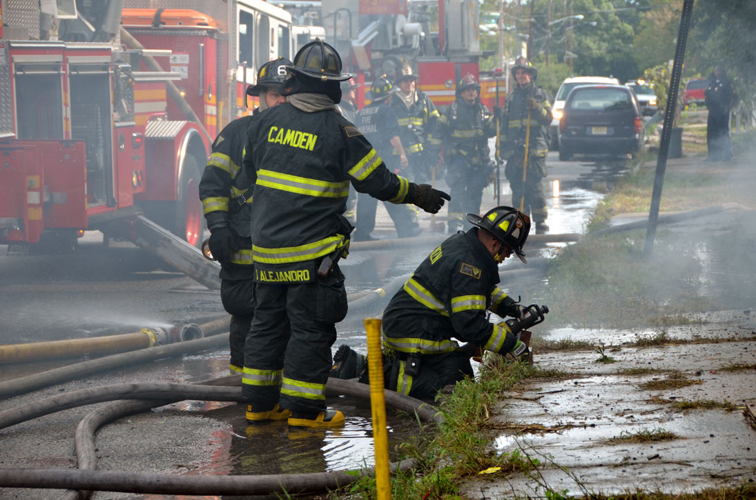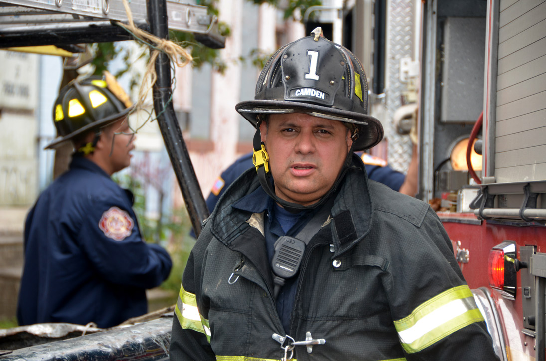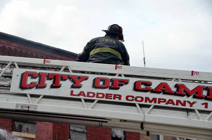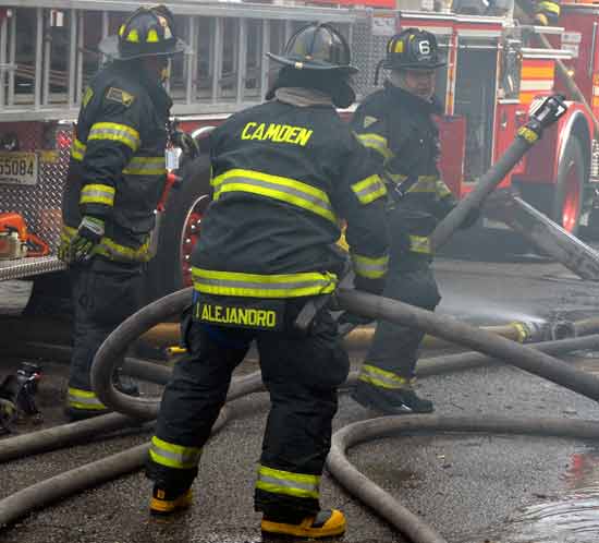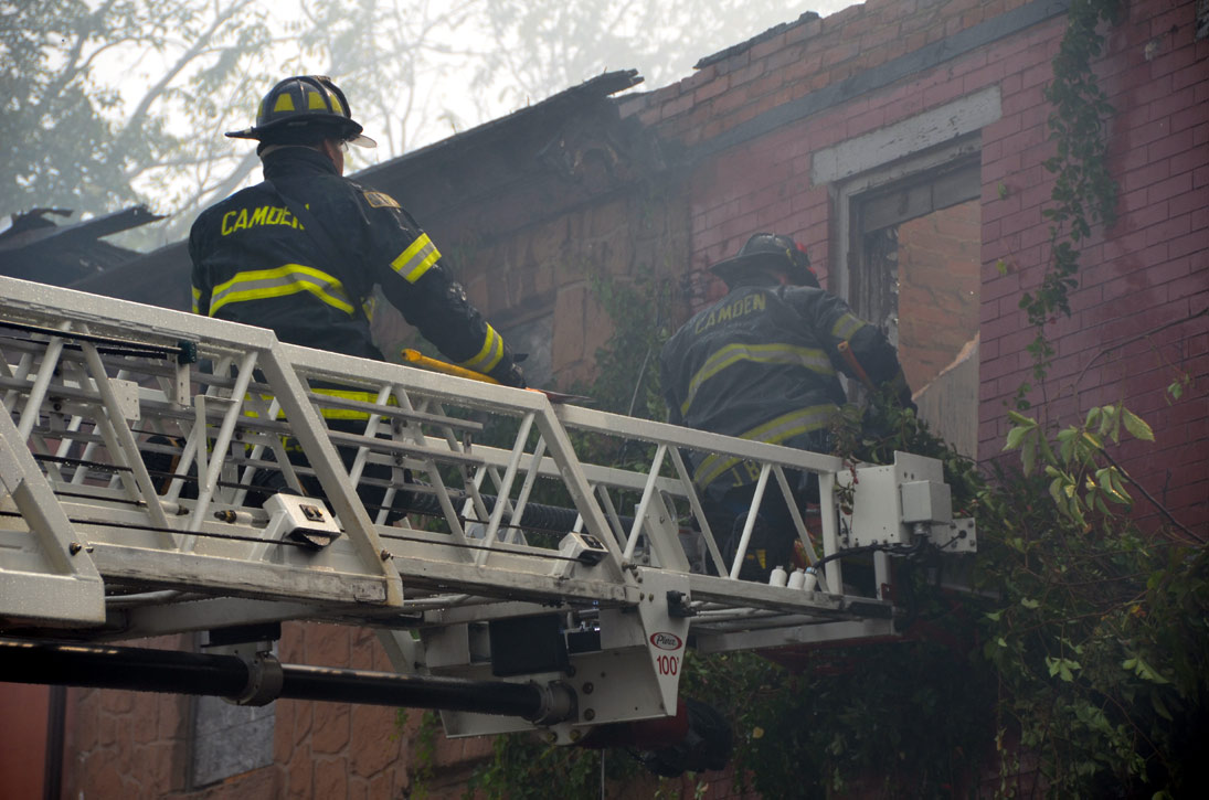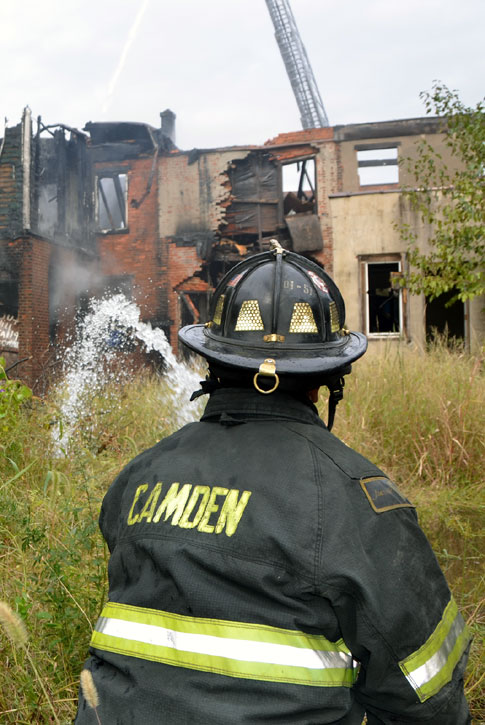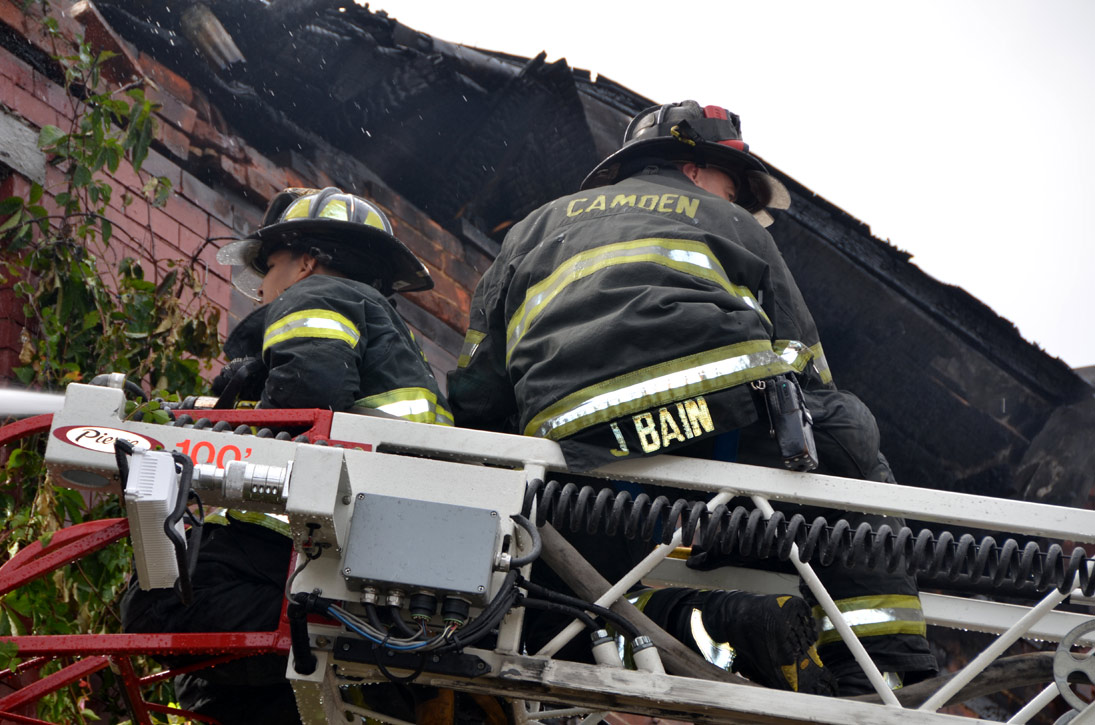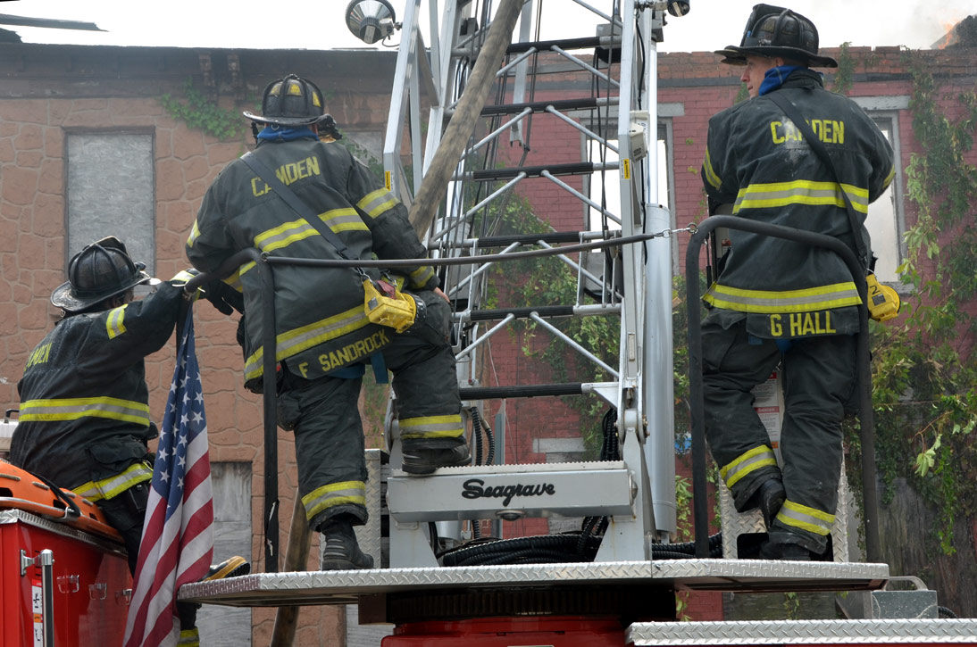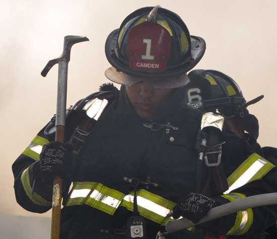 At 12:02 Camden Fire Department Chief Michael Harper placed the fire on Walnut Street under control, and companies began to be pulled from the scene. Having just arrived back on scene, I began shooting pictures at 12:03. |