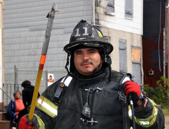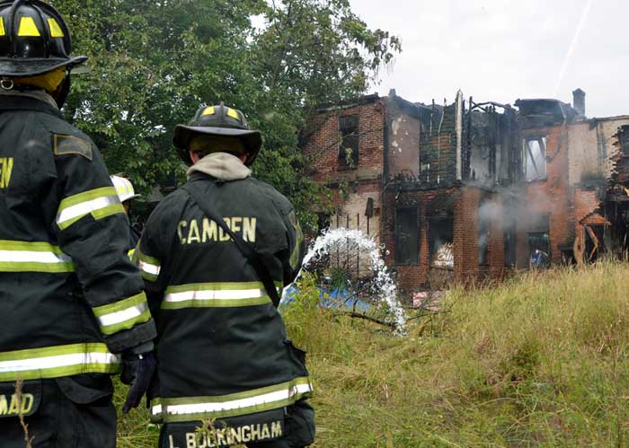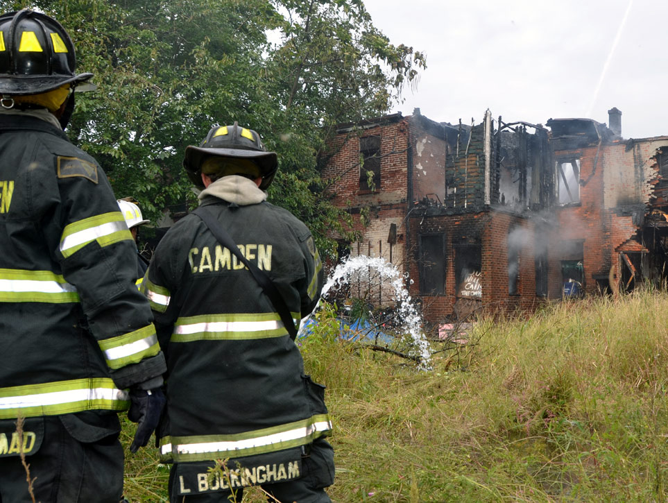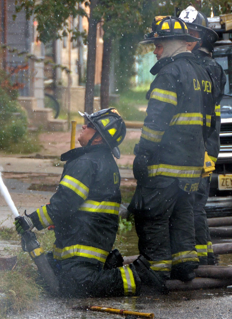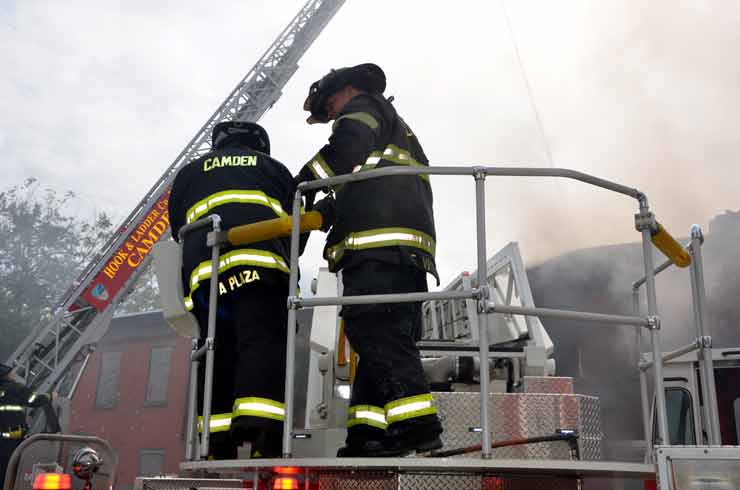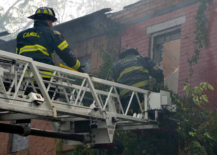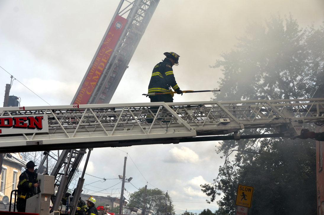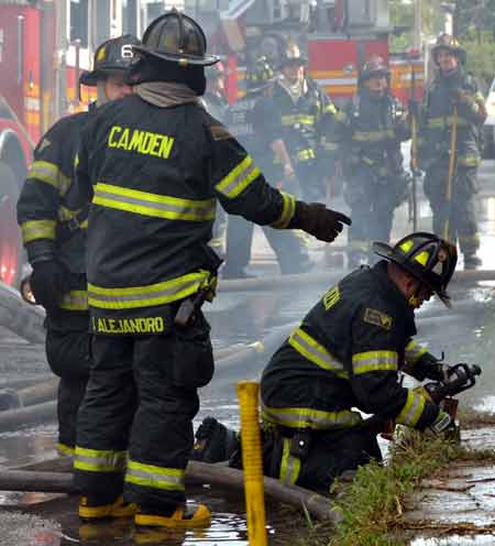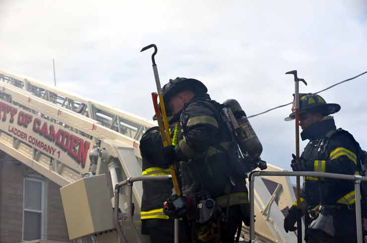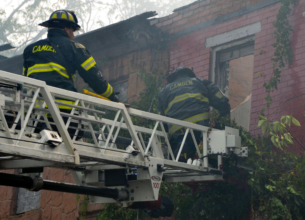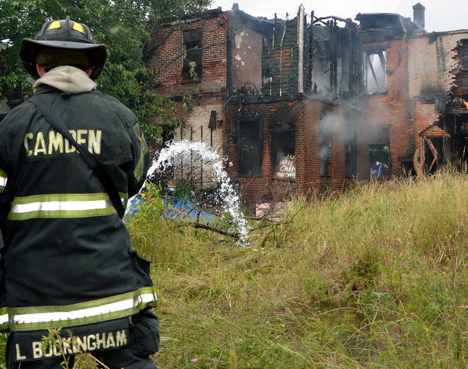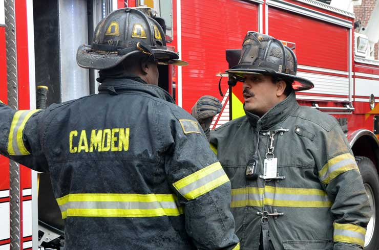 At 12:02 Camden Fire Department Chief Michael Harper placed the fire on Walnut Street under control, and companies began to be pulled from the scene. Having just arrived back on scene, I began shooting pictures at 12:03. |