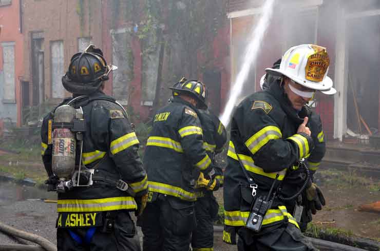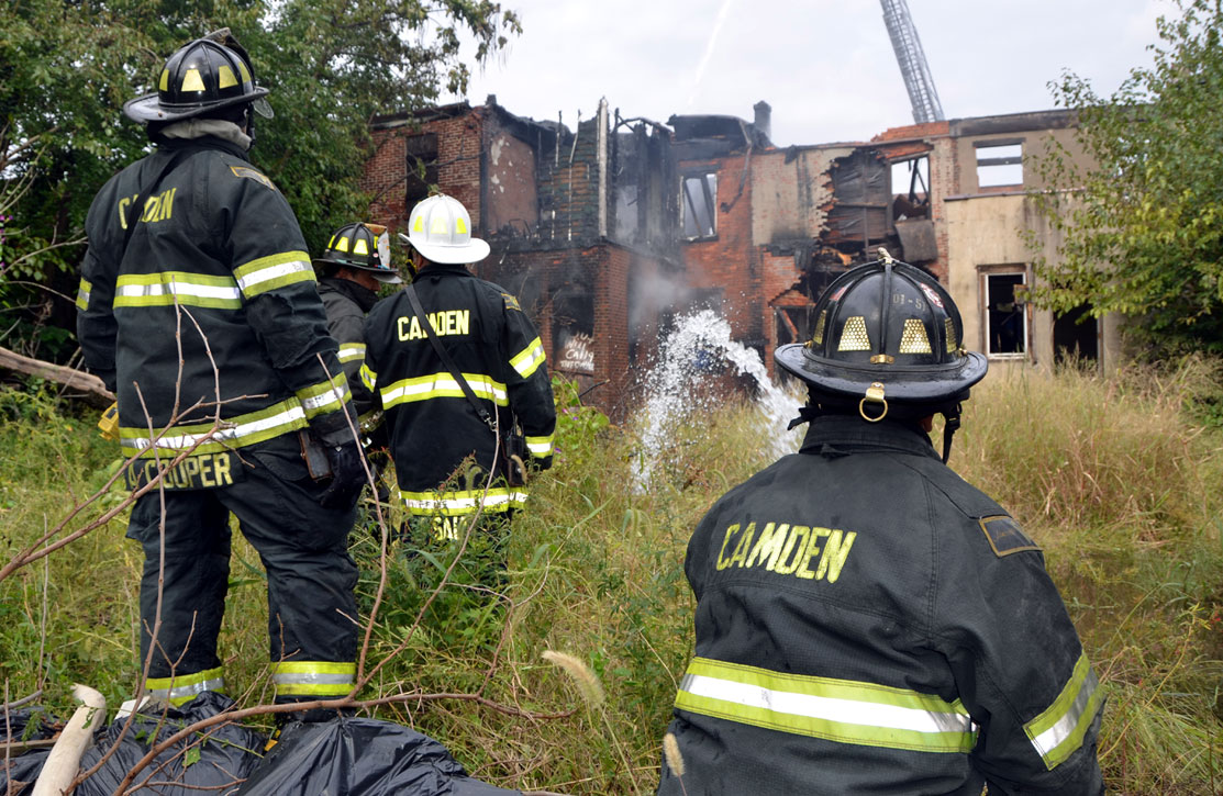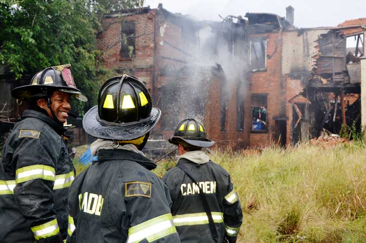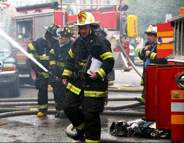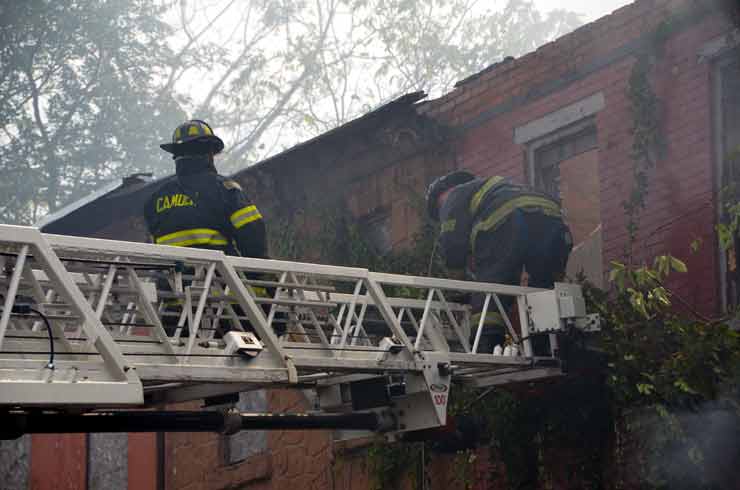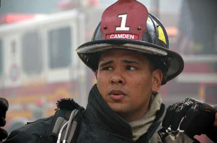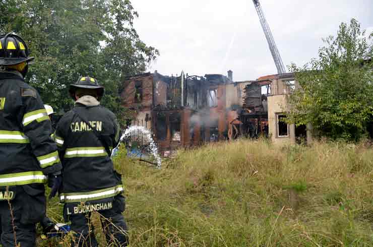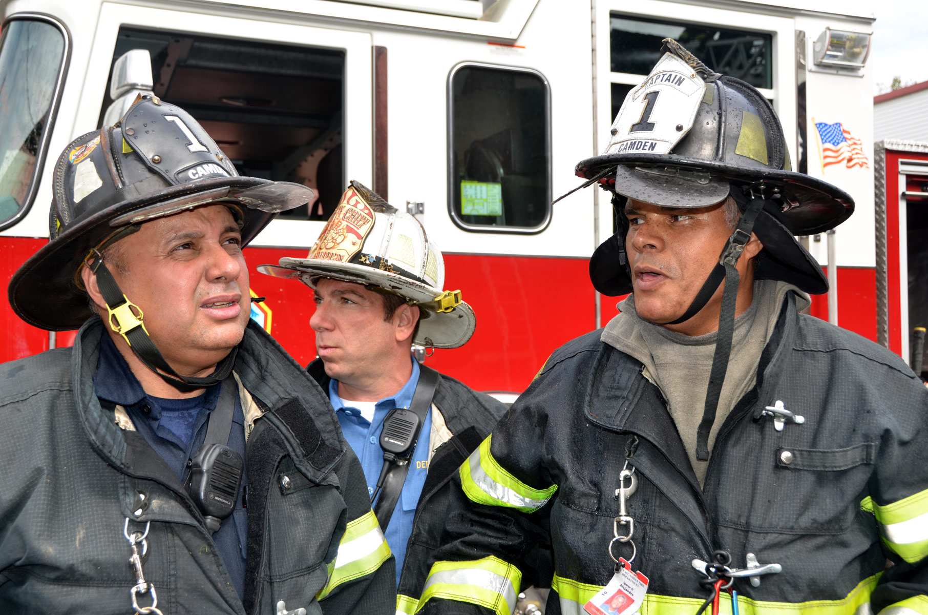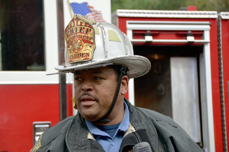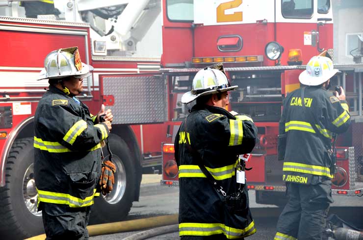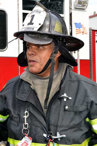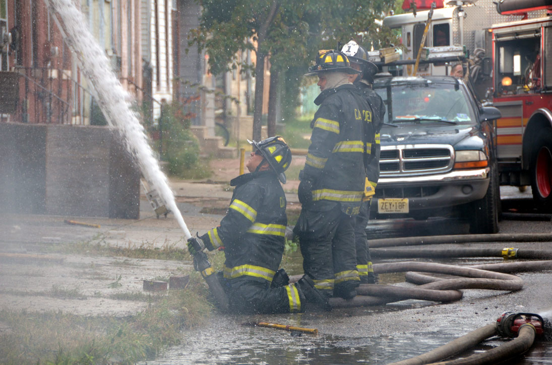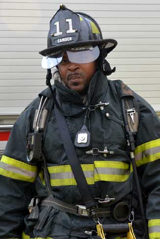 At 12:02 Camden Fire Department Chief Michael Harper placed the fire on Walnut Street under control, and companies began to be pulled from the scene. Having just arrived back on scene, I began shooting pictures at 12:03. |