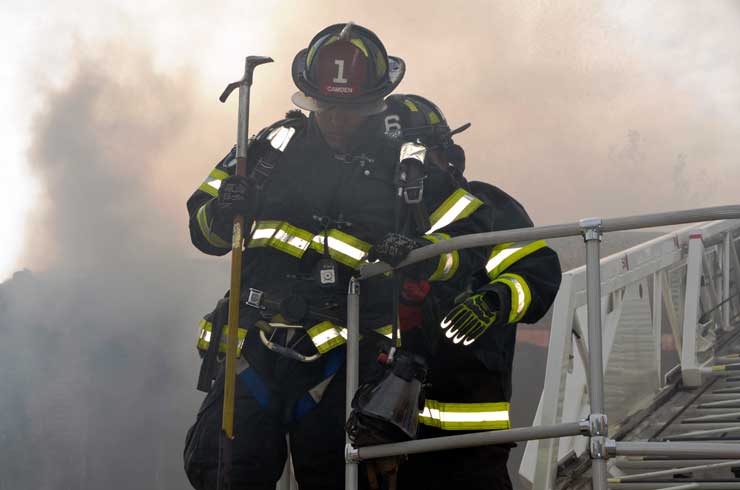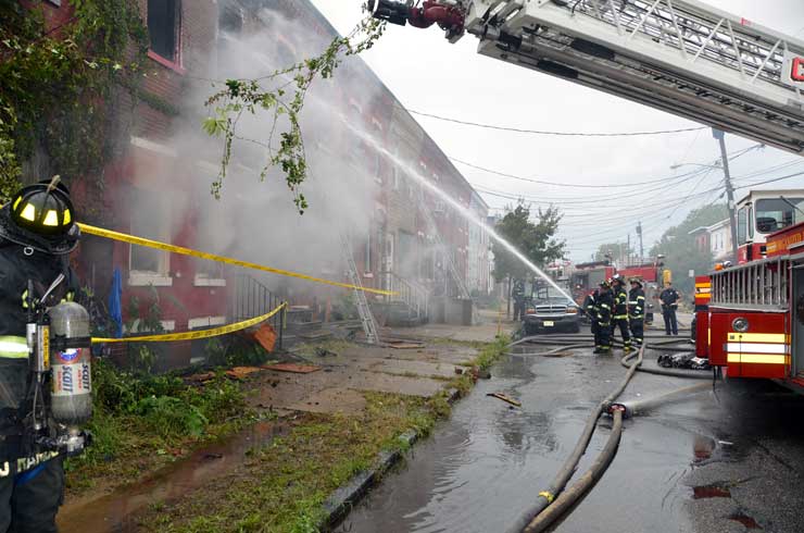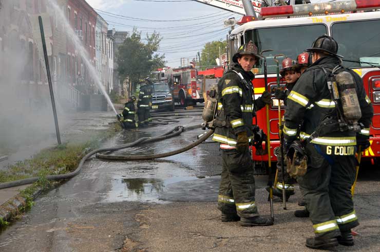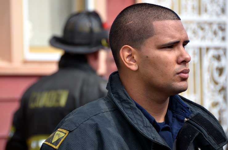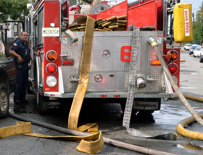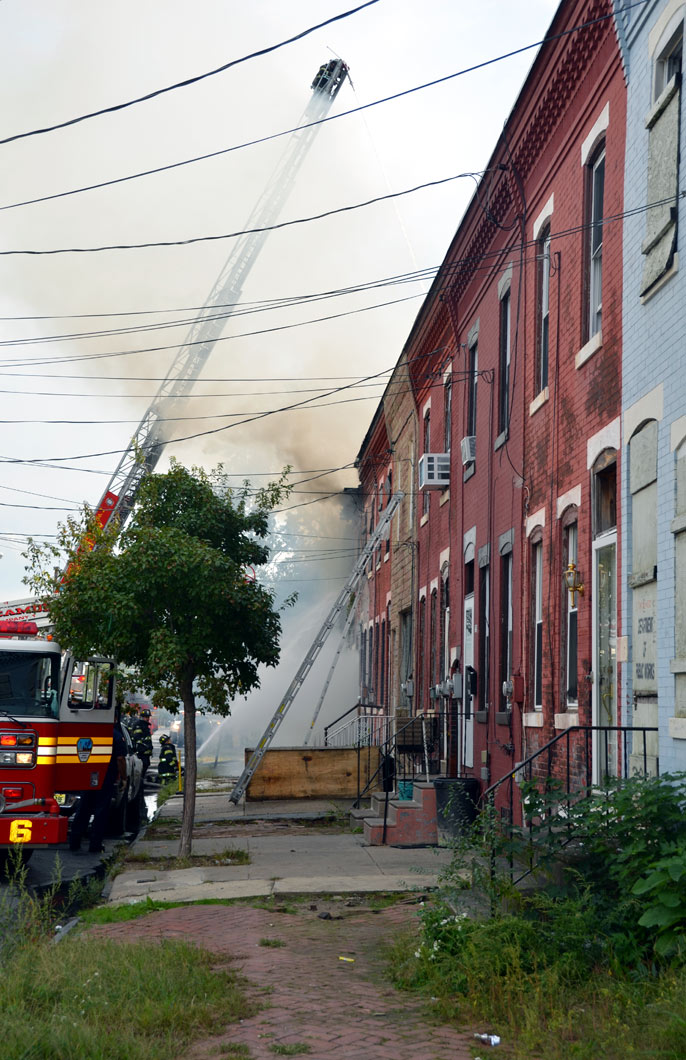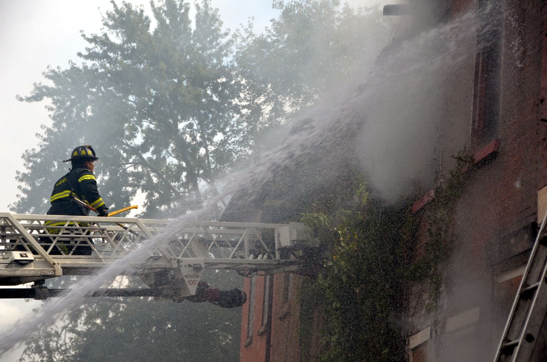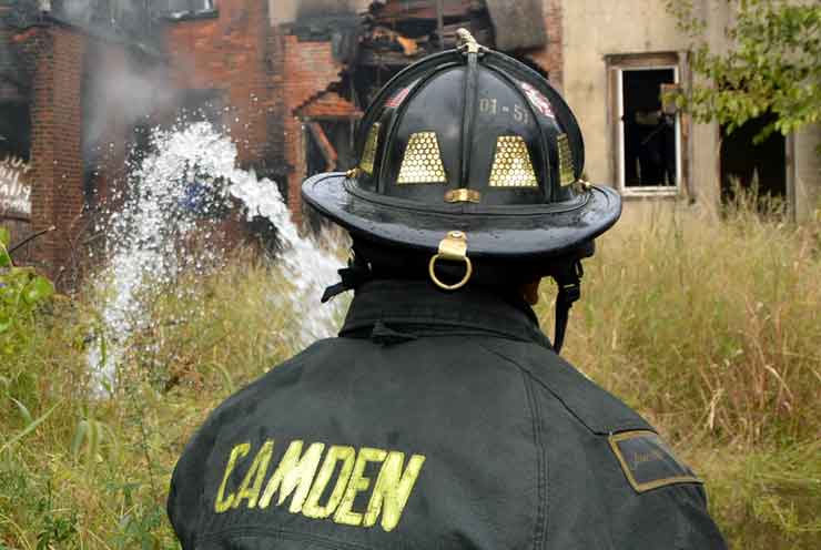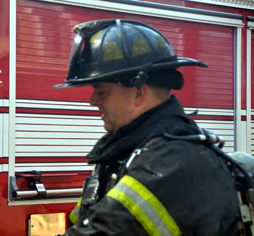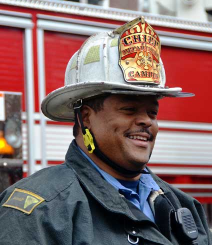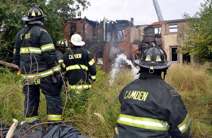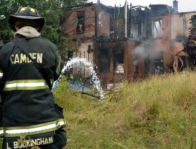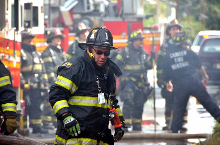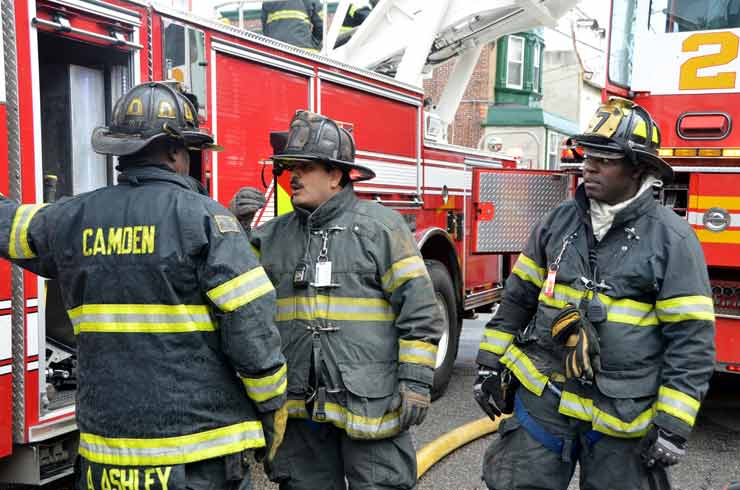 At 12:02 Camden Fire Department Chief Michael Harper placed the fire on Walnut Street under control, and companies began to be pulled from the scene. Having just arrived back on scene, I began shooting pictures at 12:03. |