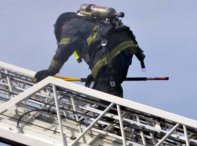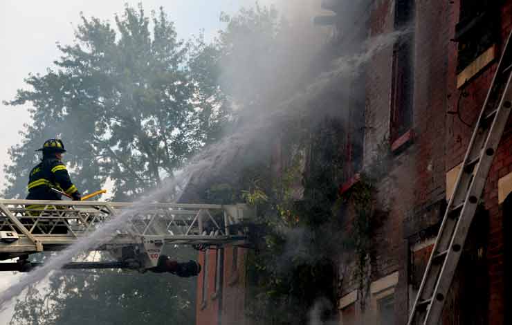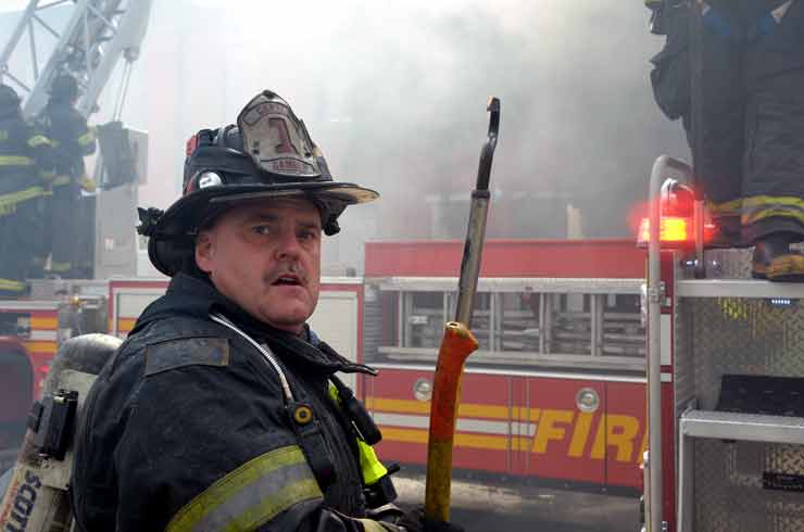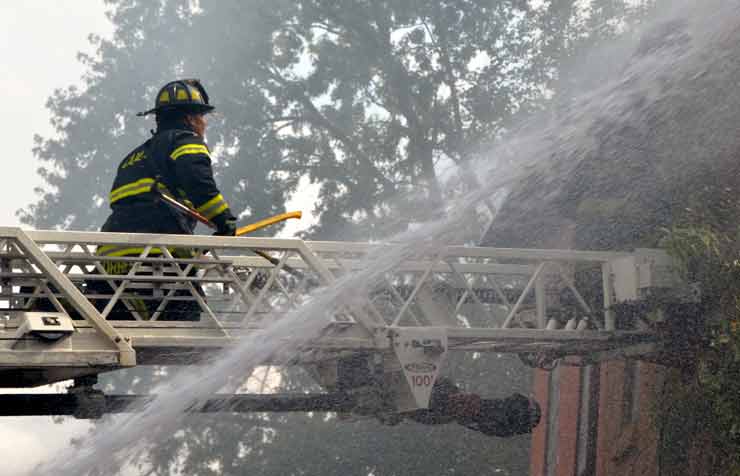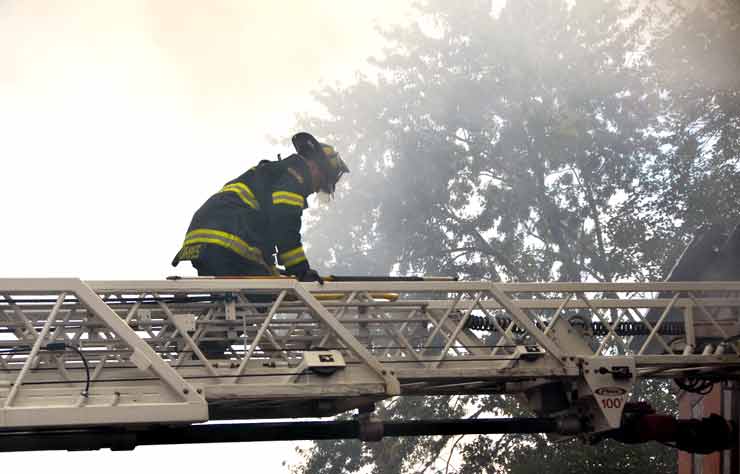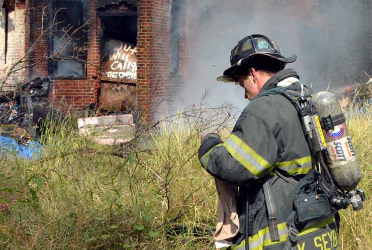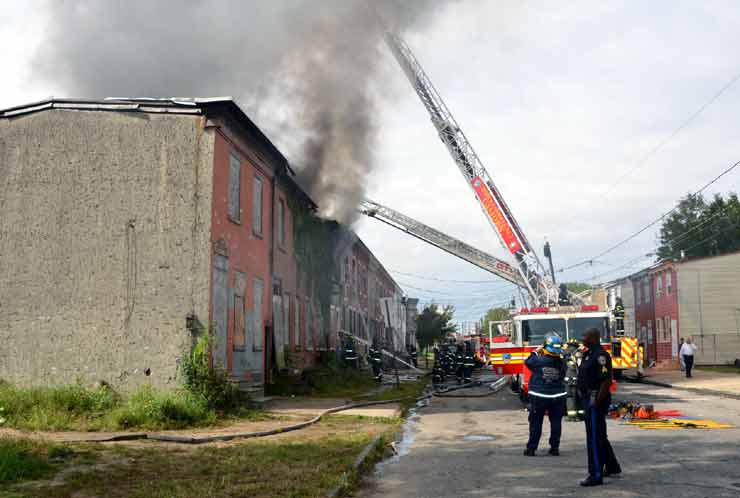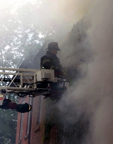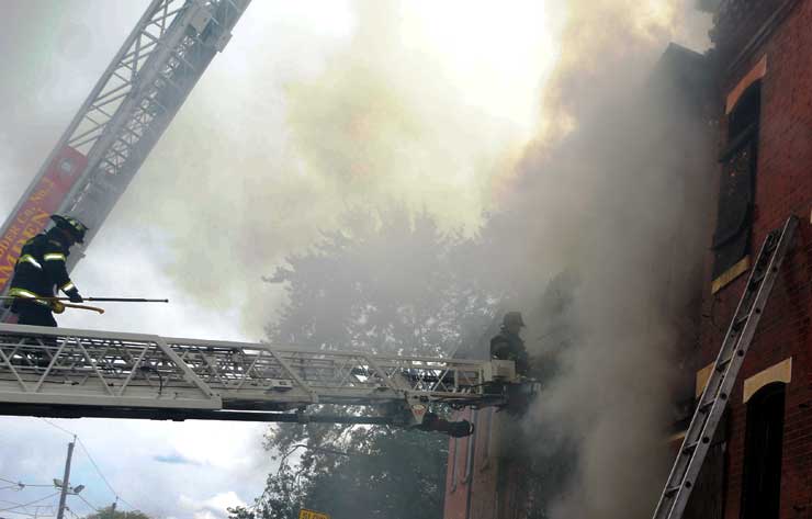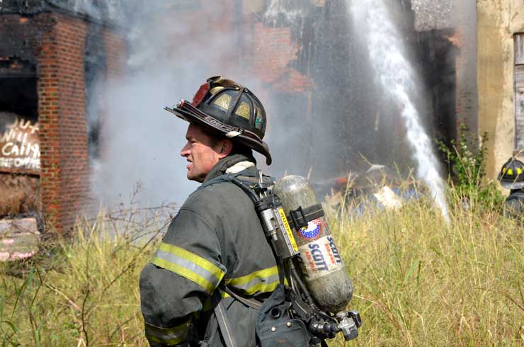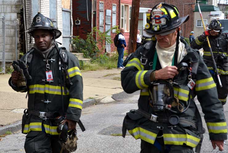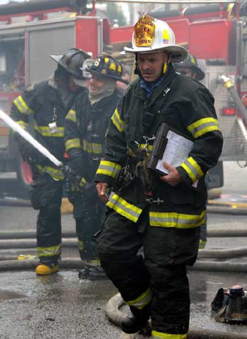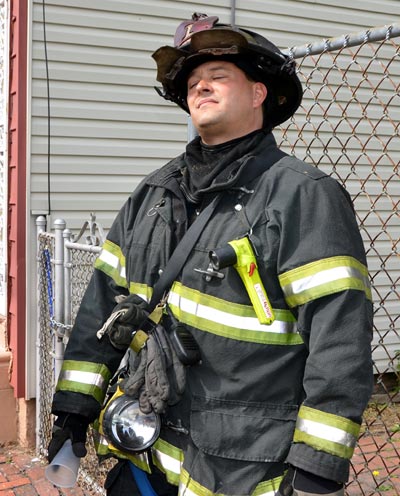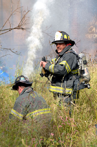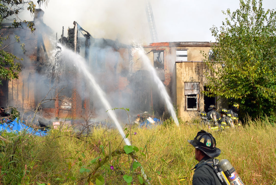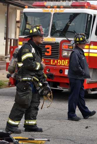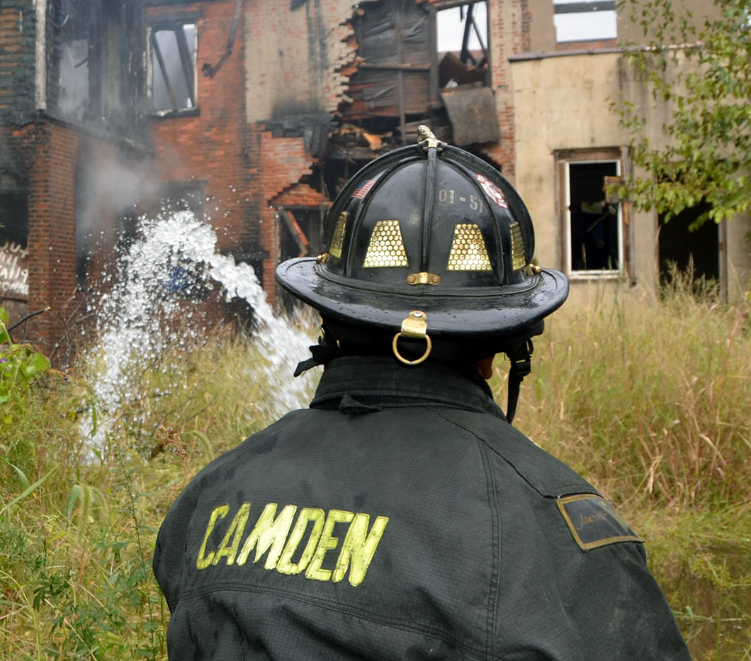At 12:02 Camden Fire Department Chief Michael Harper placed the fire on Walnut Street under control, and companies began to be pulled from the scene. Having just arrived back on scene, I began shooting pictures at 12:03. |