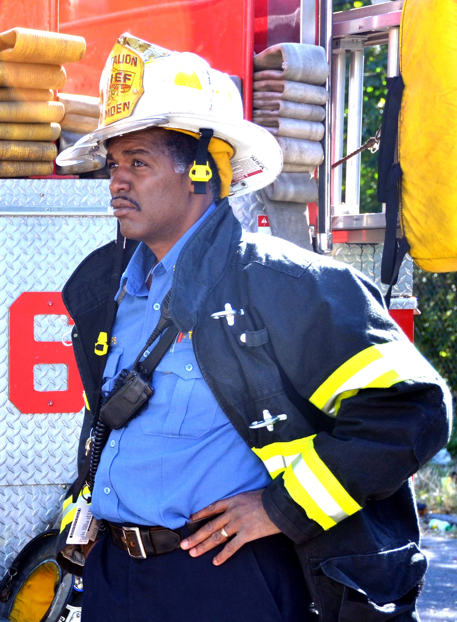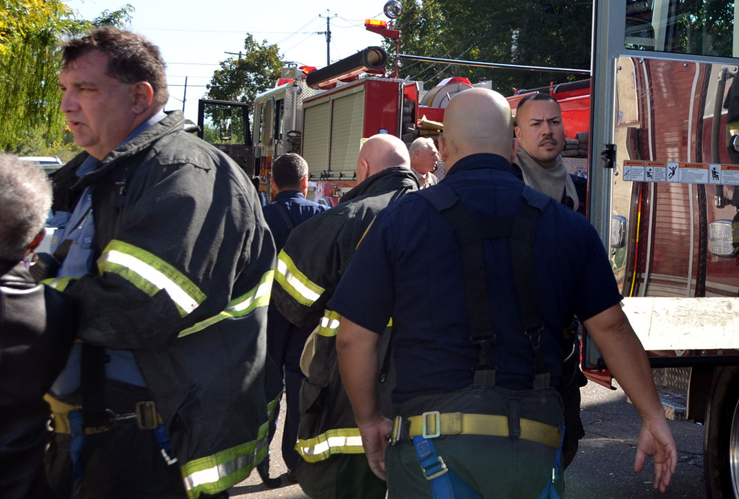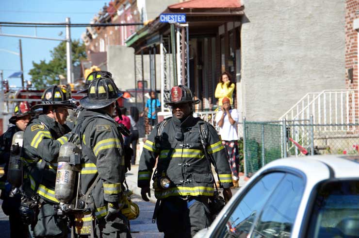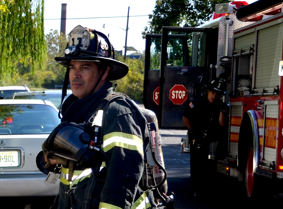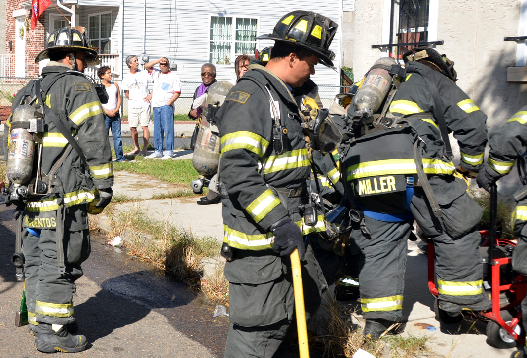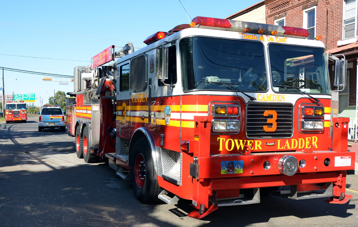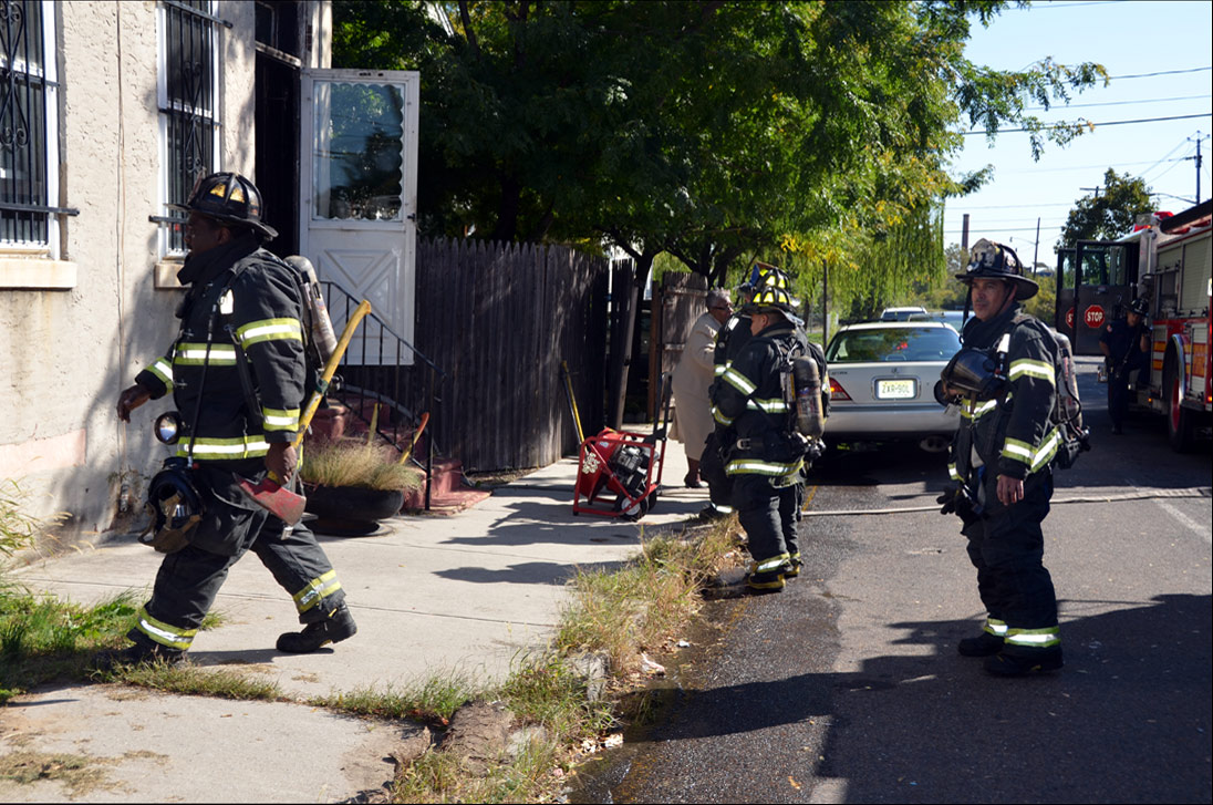 This page and the other pages in this series are the successors to the series of web-page about the Camden Fire Department called Camden Fire Department: The Fires of the Summer of 2011. On this and other pages in the series you will find pictures and information regarding different events and aspects of the fire service in Camden, New Jersey. At 10:59 on October 16, 2011 a fire was reported in a two-story house at 1017 Penn Street in North Camden, with one person possible caught inside. Engine 1, Engine 9, Ladder 1, Ladder 3, Ladder 2 (FAST Truck), Battalion 1 dispatched for report of smoke from the dwelling. Engine 1 arrived at the address, a two-story stand-alone dwelling. No fire was apparent upon arrival. After gaining entry and found the home filled with smoke and fumes. Camden Fire Department personnel conducted a search of the premises. Firefighter Mariano Pinto discovered an unconscious female on the second floor. Battalion 1 requested BLS and a medic for the unconscious woman. Upon further investigation discovered a malfunctioning oil-fired furnace, emitting high levels of carbon monoxide in the dwelling, which caused the female occupant to pass out. She was was removed from the building and taken to an ambulance, transported to hospital, however it was tool late to save her life. The building was ventilated, which took quite some time, and then secured. All units were made available at 11:49 AM. The victim of this tragedy was Vivian Gaddis, 83. Ms. Gaddis was a former beautician who had been recognized as the best-dressed African-American woman in Camden in January of 1957. As with the web page covering other Camden Fire Department events, if you can identify anyone that I've missed, please comment at the bottom of the page. (I'm terrible at at names and faces). October 27, 2011 |