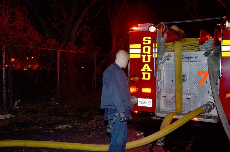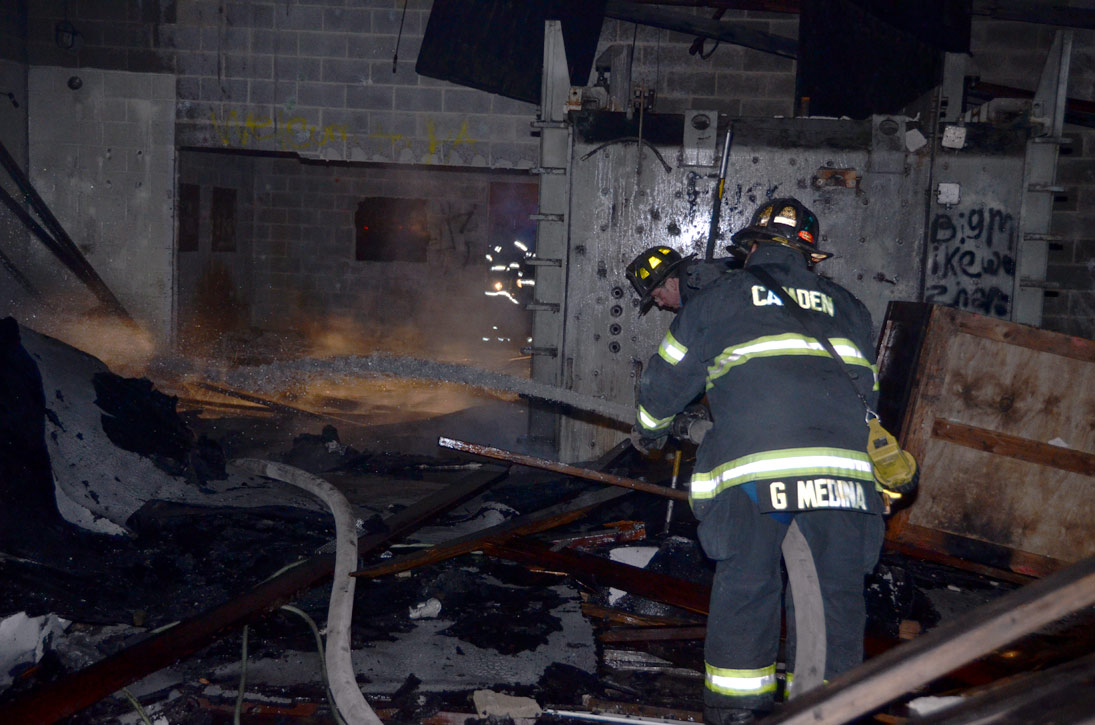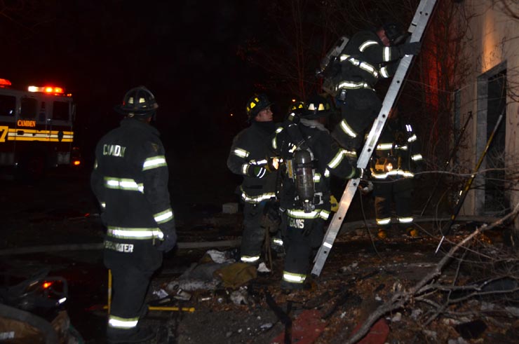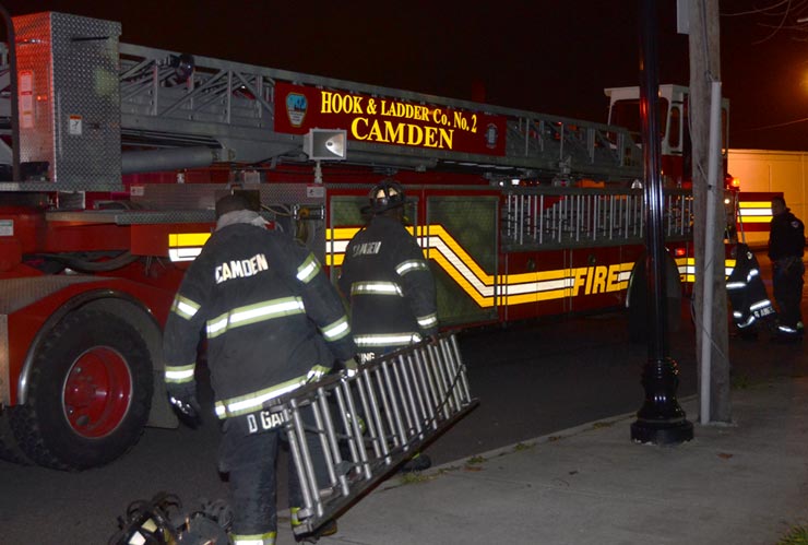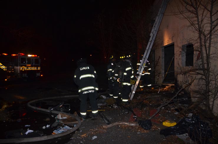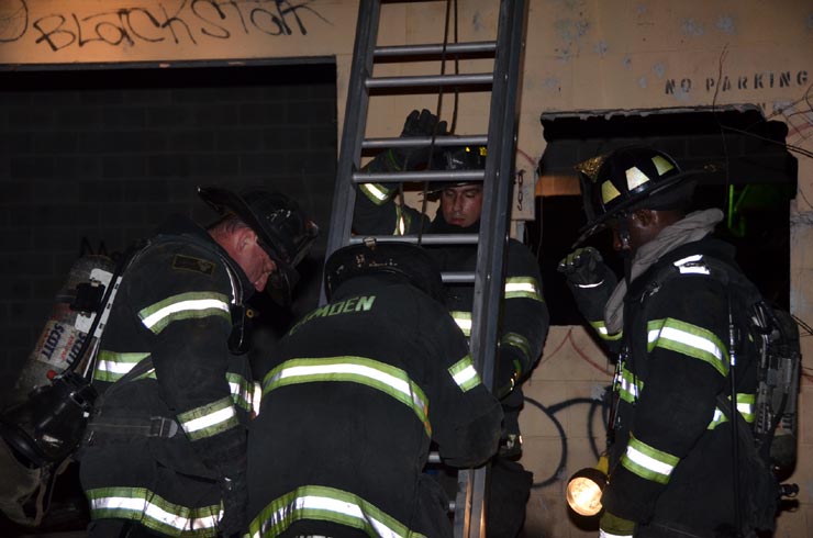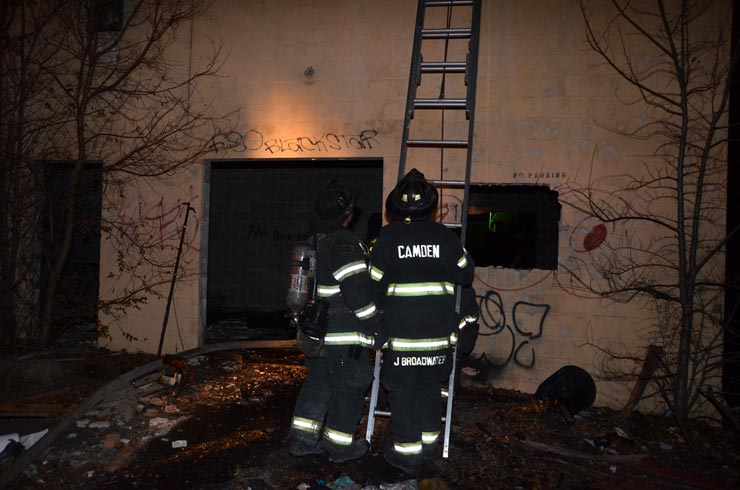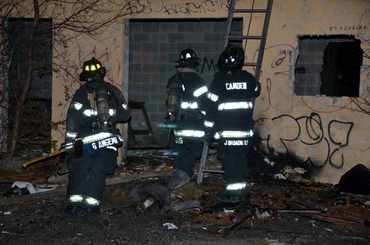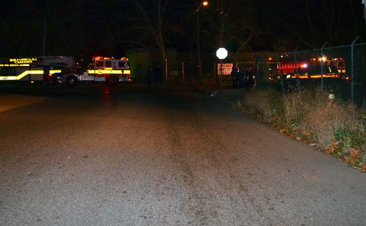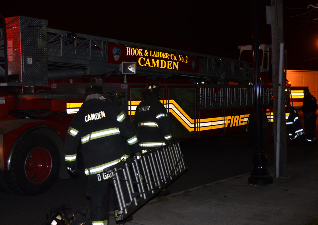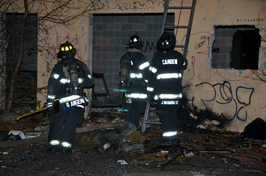 This page and the other pages in this series are the successors to the series of web-page about the Camden Fire Department called Camden Fire Department: The Fires of the Summer of 2011. On this and other pages in the series you will find pictures and information regarding different events and aspects of the fire service in Camden, New Jersey. On Saturday night, December 3, 2011 units of the Camden Fire Department were called out to extinguish a rubbish fire that had been set in the buildings formerly occupied by the Coriell Institute for Medical Research, on Davis Street at Copewood Street. This fire was knocked down in short order, but the miscreants who had set it came back on Sunday, December 4, and this blaze required considerably more effort to combat. Multiple calls were received reporting the building on fire. Squad 7 arrived with fire showing in the rear. Squad 7 laid in and went into operation with a 1-3/4" hand line. Battalion Chief Ed Glassman used Ladder Company 2 and Engine Company 10 to assist on the assignment. The site had been the home of the Camden Municipal Hospital for Contagious Diseases, whose last director was Dr. Lewis Coriell. At some point after 1956 the hospital was closed and razed. The property was subdivided, Decatur Street was extended from Pershing Street to Davis Street, and a series of two story apartments were erected on the north side of Decatur Street. Dr. Coriell erected a research laboratory on the south side of Decatur Street, and operated as the Institute for Medical Research and as the South Jersey Medical Research Foundation. In the 1980s the facility was renamed the Coriell Institute for Medical Research and moved to new quarters on Haddon Avenue and Washington Street. The laboratory building and other structures remained in use into the early 2000s, but subsequently became vacant, and were vandalized. Prior to the incidents of December 3 and December 4, a small fire was dealt with in June by the Camden Fire Department. I arrived on sight and began taking pictures at 7:43 P.M., shortly after the blaze had been placed under control. The fire was in a part of the complex quite some distance from any overhead street lighting and it was very dark. CFD personnel were operating with handheld lights during the time that I observed operations. The photos below are presented in the order in which they were taken, and in some cases two versions of the same shot are presented… what I saw, or didn't see, as it was quite dark; and a "lightened up" version via Photoshop so you can see what was going on and what the conditions were. The units involved were Battalion Chief Ed Glassman; Squad 7 (Captain Warren Everett, Firefighters Michael Mercado, Danny Gonzalez, Gerry Medina); Ladder 2 (Captain Ed Stratton, Firefighters Gabe Angemi, Johnnie Broadwater, Darien Gans); and Engine 10 (Captain Brian Irving, Firefighters Dominic Barret, Tyrone Baker, Jay Snyder). As with the web page covering other Camden Fire Department events, if you can identify anyone that I've missed, please comment at the bottom of the page. (I'm terrible at at names and faces). December 6, 2011 |