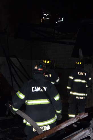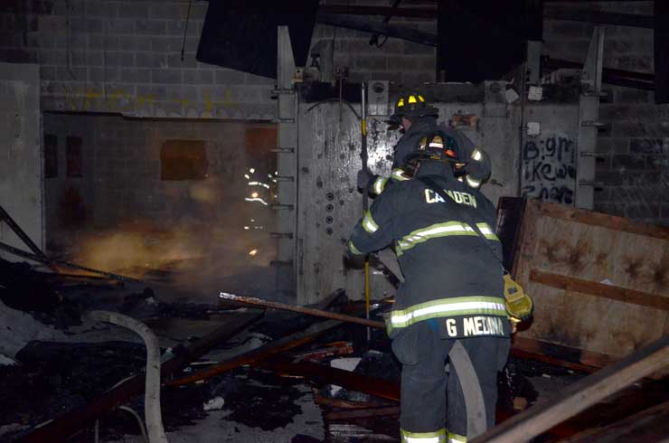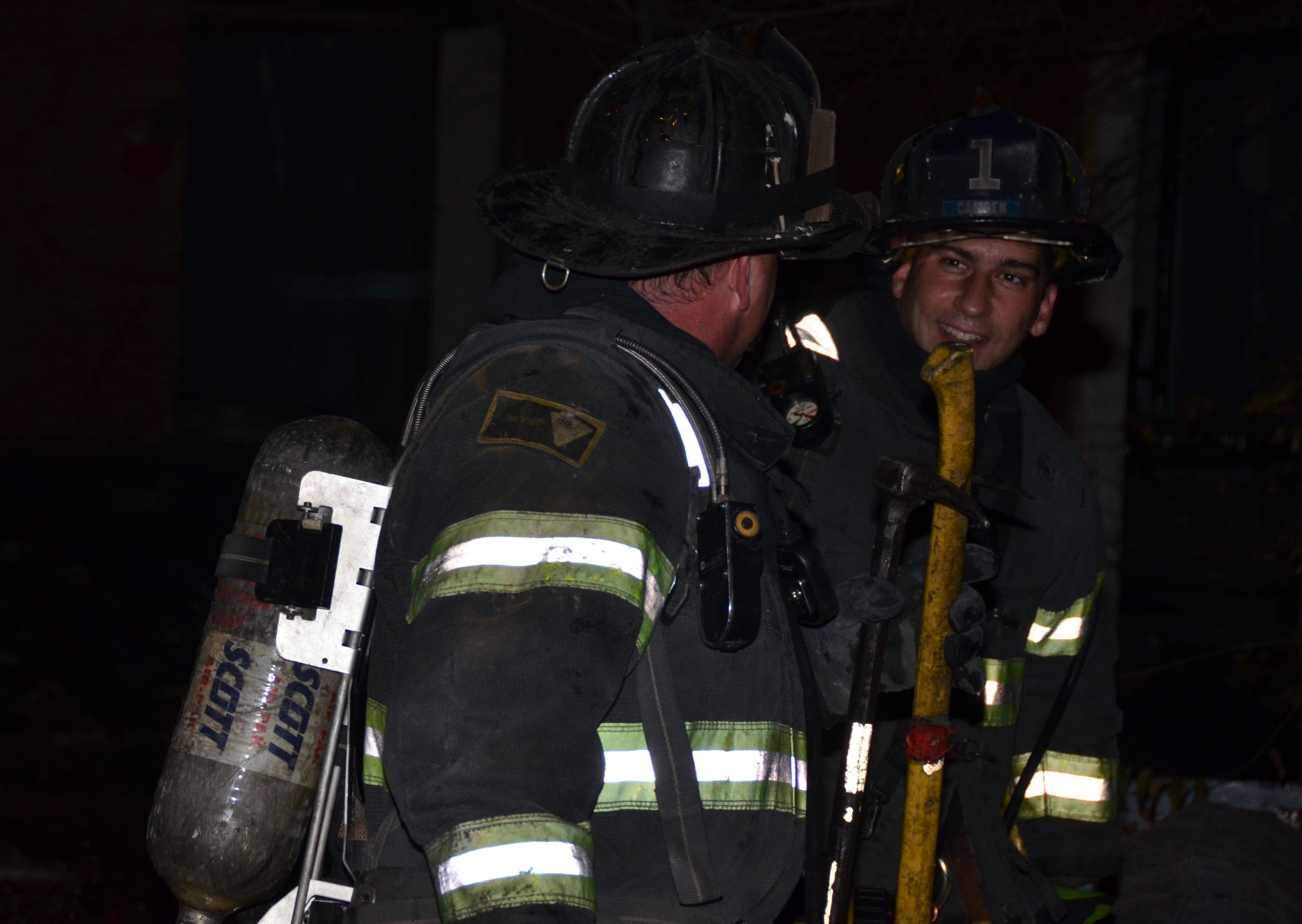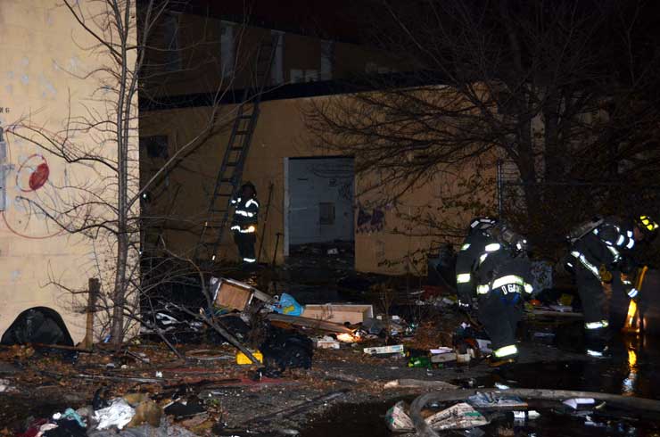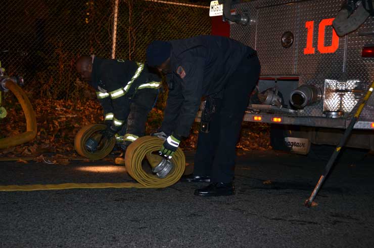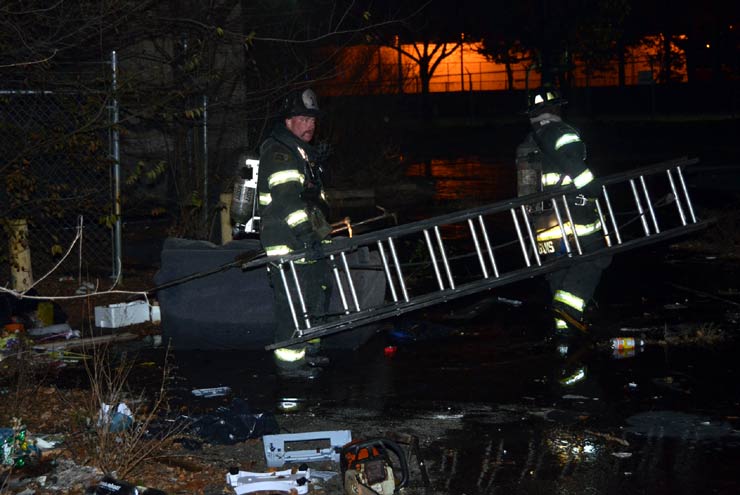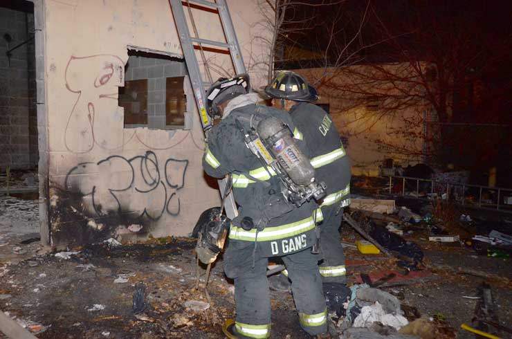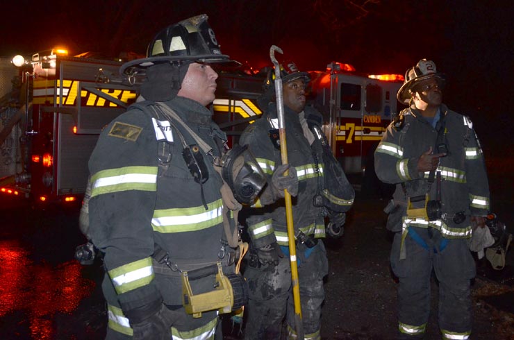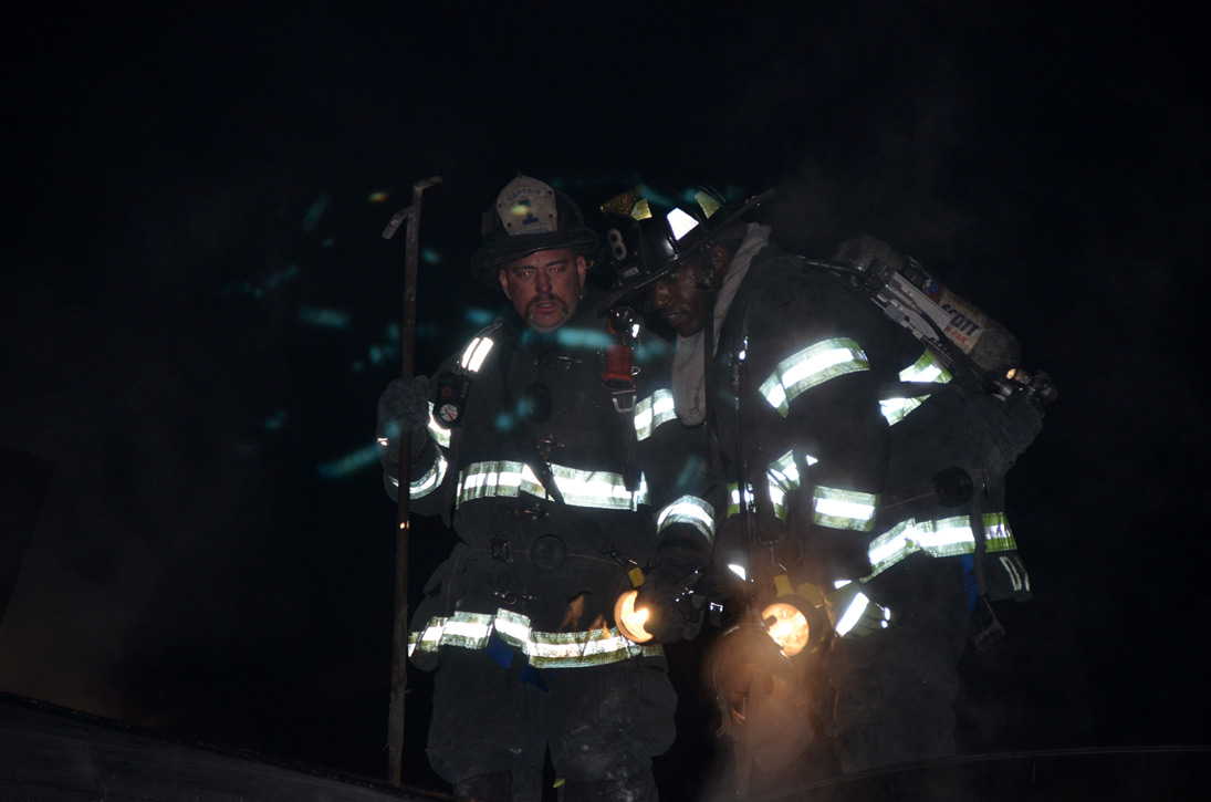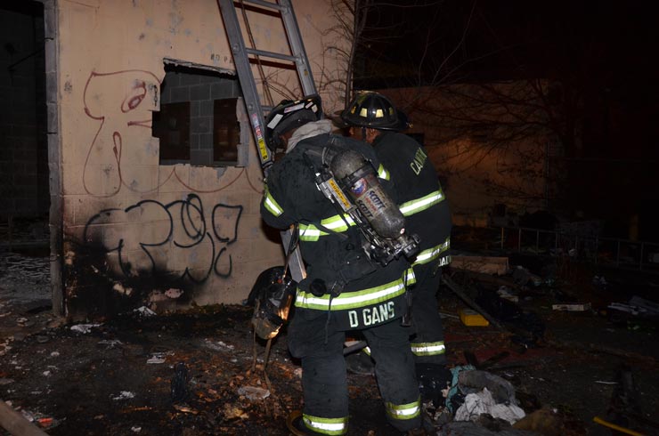 This page and the other pages in this series are the successors to the series of web-page about the Camden Fire Department called Camden Fire Department: The Fires of the Summer of 2011. On this and other pages in the series you will find pictures and information regarding different events and aspects of the fire service in Camden, New Jersey. On Saturday night, December 3, 2011 units of the Camden Fire Department were called out to extinguish a rubbish fire that had been set in the buildings formerly occupied by the Coriell Institute for Medical Research, on Davis Street at Copewood Street. This fire was knocked down in short order, but the miscreants who had set it came back on Sunday, December 4, and this blaze required considerably more effort to combat. Multiple calls were received reporting the building on fire. Squad 7 arrived with fire showing in the rear. Squad 7 laid in and went into operation with a 1-3/4" hand line. Battalion Chief Ed Glassman used Ladder Company 2 and Engine Company 10 to assist on the assignment. The site had been the home of the Camden Municipal Hospital for Contagious Diseases, whose last director was Dr. Lewis Coriell. At some point after 1956 the hospital was closed and razed. The property was subdivided, Decatur Street was extended from Pershing Street to Davis Street, and a series of two story apartments were erected on the north side of Decatur Street. Dr. Coriell erected a research laboratory on the south side of Decatur Street, and operated as the Institute for Medical Research and as the South Jersey Medical Research Foundation. In the 1980s the facility was renamed the Coriell Institute for Medical Research and moved to new quarters on Haddon Avenue and Washington Street. The laboratory building and other structures remained in use into the early 2000s, but subsequently became vacant, and were vandalized. Prior to the incidents of December 3 and December 4, a small fire was dealt with in June by the Camden Fire Department. I arrived on sight and began taking pictures at 7:43 P.M., shortly after the blaze had been placed under control. The fire was in a part of the complex quite some distance from any overhead street lighting and it was very dark. CFD personnel were operating with handheld lights during the time that I observed operations. The photos below are presented in the order in which they were taken, and in some cases two versions of the same shot are presented… what I saw, or didn't see, as it was quite dark; and a "lightened up" version via Photoshop so you can see what was going on and what the conditions were. The units involved were Battalion Chief Ed Glassman; Squad 7 (Captain Warren Everett, Firefighters Michael Mercado, Danny Gonzalez, Gerry Medina); Ladder 2 (Captain Ed Stratton, Firefighters Gabe Angemi, Johnnie Broadwater, Darien Gans); and Engine 10 (Captain Brian Irving, Firefighters Dominic Barret, Tyrone Baker, Jay Snyder). As with the web page covering other Camden Fire Department events, if you can identify anyone that I've missed, please comment at the bottom of the page. (I'm terrible at at names and faces). December 6, 2011 |