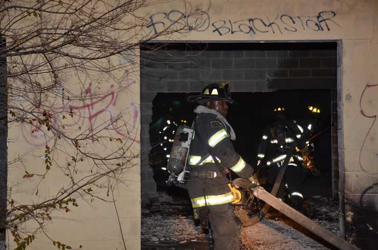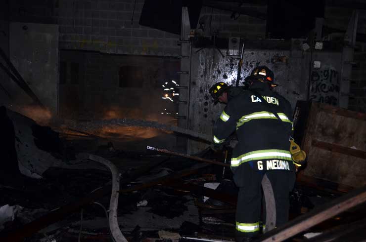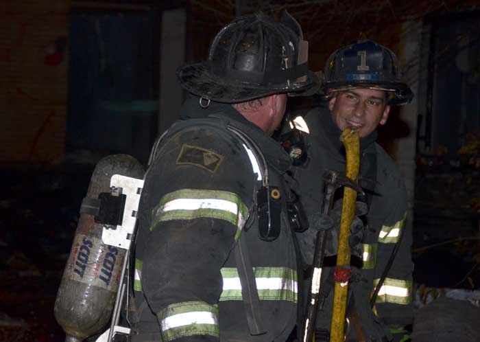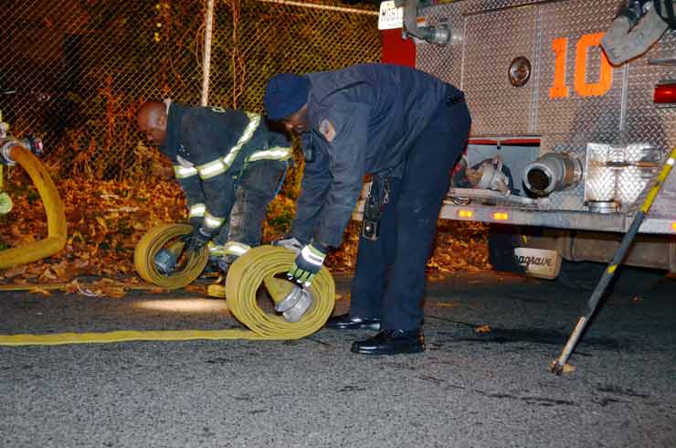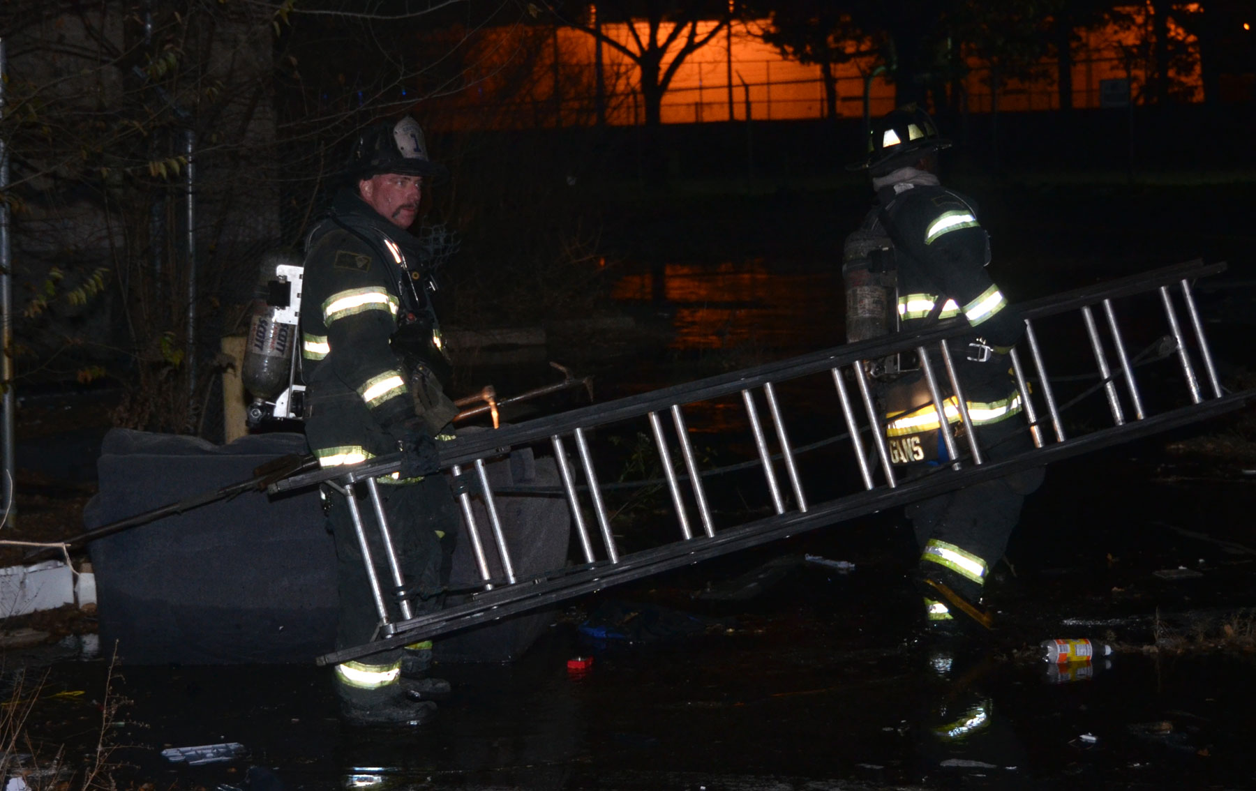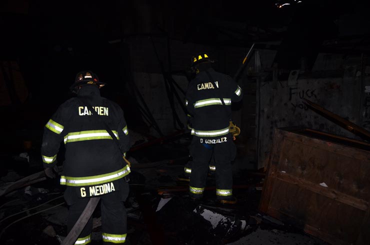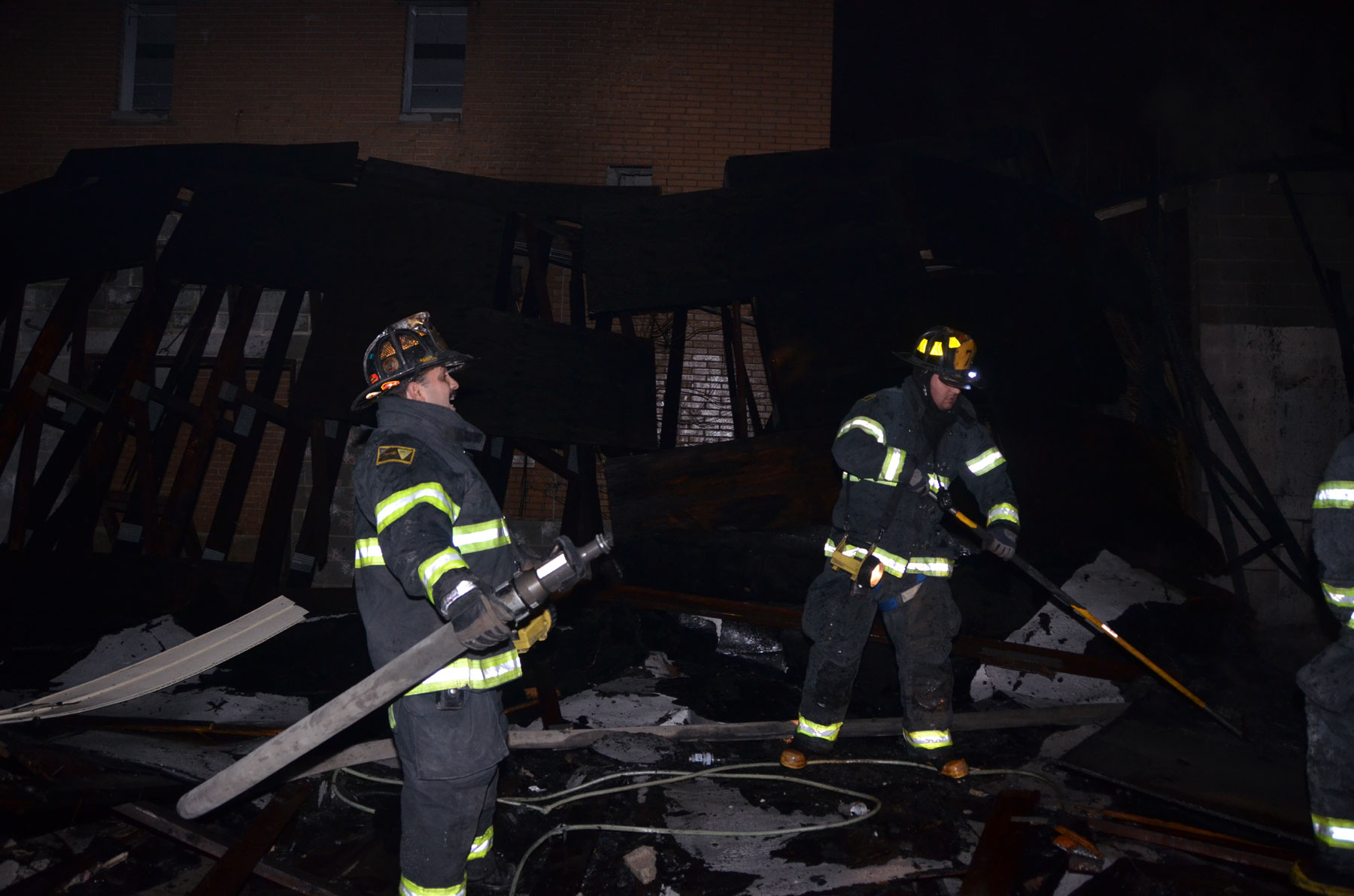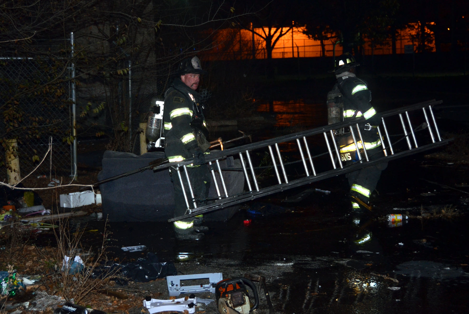 This page and the other pages in this series are the successors to the series of web-page about the Camden Fire Department called Camden Fire Department: The Fires of the Summer of 2011. On this and other pages in the series you will find pictures and information regarding different events and aspects of the fire service in Camden, New Jersey. On Saturday night, December 3, 2011 units of the Camden Fire Department were called out to extinguish a rubbish fire that had been set in the buildings formerly occupied by the Coriell Institute for Medical Research, on Davis Street at Copewood Street. This fire was knocked down in short order, but the miscreants who had set it came back on Sunday, December 4, and this blaze required considerably more effort to combat. Multiple calls were received reporting the building on fire. Squad 7 arrived with fire showing in the rear. Squad 7 laid in and went into operation with a 1-3/4" hand line. Battalion Chief Ed Glassman used Ladder Company 2 and Engine Company 10 to assist on the assignment. The site had been the home of the Camden Municipal Hospital for Contagious Diseases, whose last director was Dr. Lewis Coriell. At some point after 1956 the hospital was closed and razed. The property was subdivided, Decatur Street was extended from Pershing Street to Davis Street, and a series of two story apartments were erected on the north side of Decatur Street. Dr. Coriell erected a research laboratory on the south side of Decatur Street, and operated as the Institute for Medical Research and as the South Jersey Medical Research Foundation. In the 1980s the facility was renamed the Coriell Institute for Medical Research and moved to new quarters on Haddon Avenue and Washington Street. The laboratory building and other structures remained in use into the early 2000s, but subsequently became vacant, and were vandalized. Prior to the incidents of December 3 and December 4, a small fire was dealt with in June by the Camden Fire Department. I arrived on sight and began taking pictures at 7:43 P.M., shortly after the blaze had been placed under control. The fire was in a part of the complex quite some distance from any overhead street lighting and it was very dark. CFD personnel were operating with handheld lights during the time that I observed operations. The photos below are presented in the order in which they were taken, and in some cases two versions of the same shot are presented… what I saw, or didn't see, as it was quite dark; and a "lightened up" version via Photoshop so you can see what was going on and what the conditions were. The units involved were Battalion Chief Ed Glassman; Squad 7 (Captain Warren Everett, Firefighters Michael Mercado, Danny Gonzalez, Gerry Medina); Ladder 2 (Captain Ed Stratton, Firefighters Gabe Angemi, Johnnie Broadwater, Darien Gans); and Engine 10 (Captain Brian Irving, Firefighters Dominic Barret, Tyrone Baker, Jay Snyder). As with the web page covering other Camden Fire Department events, if you can identify anyone that I've missed, please comment at the bottom of the page. (I'm terrible at at names and faces). December 6, 2011 |