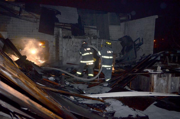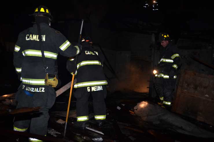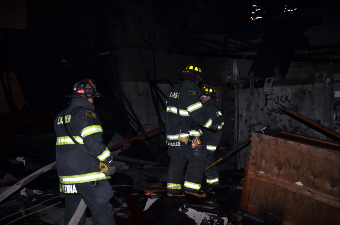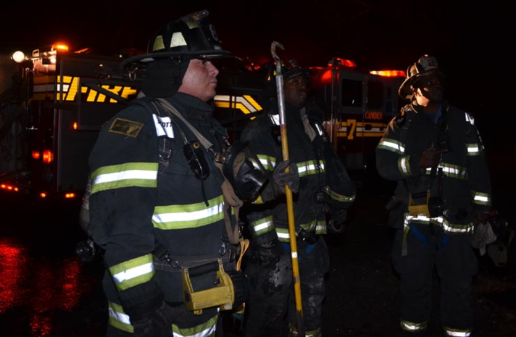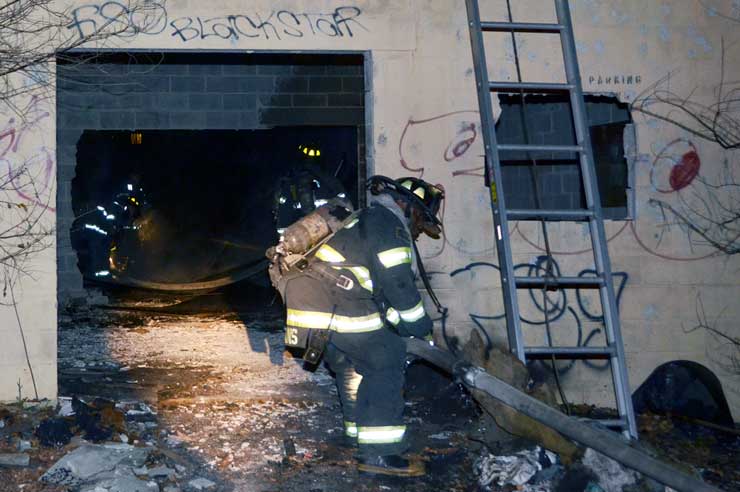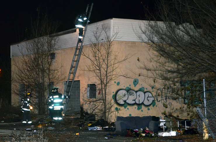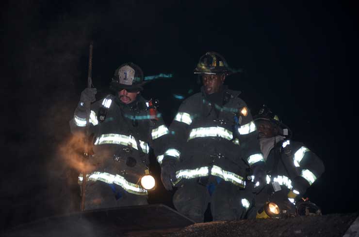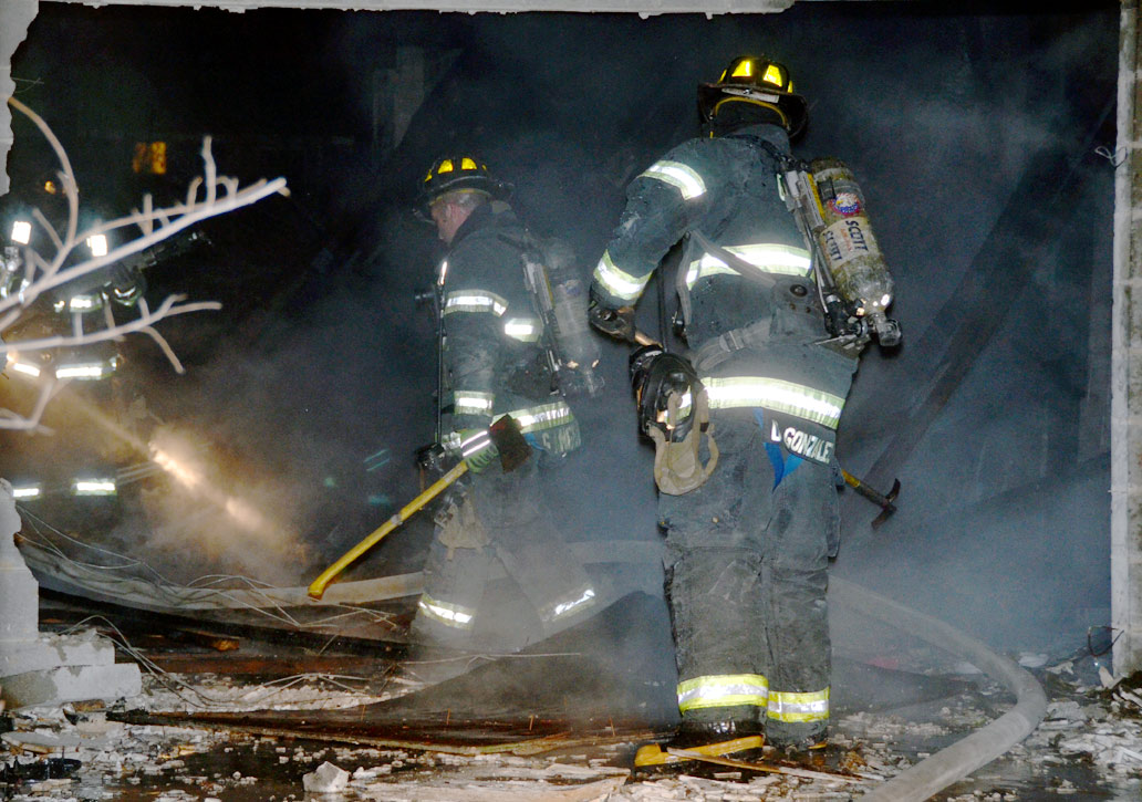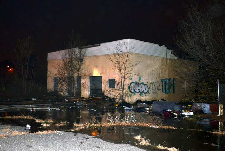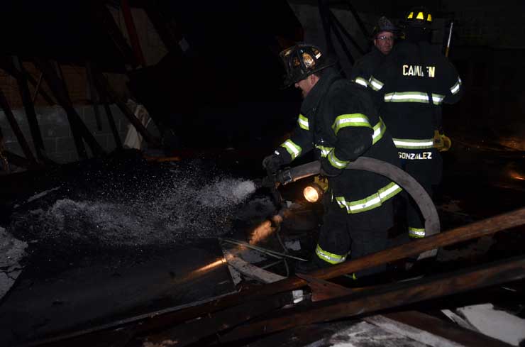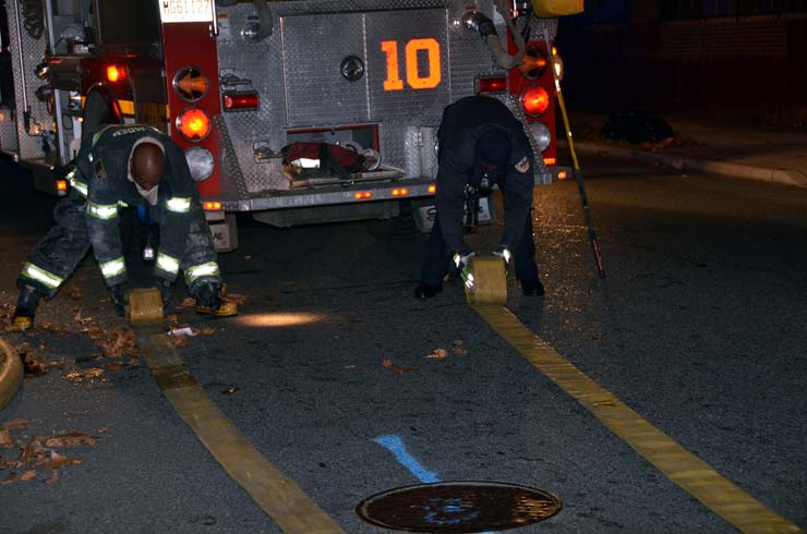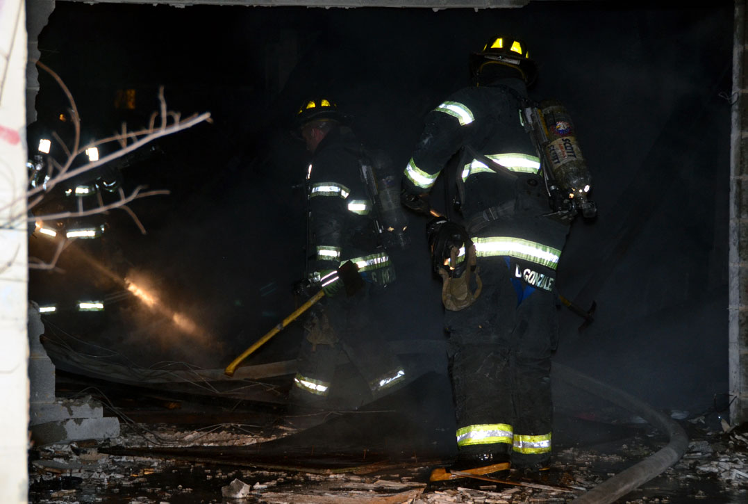 This page and the other pages in this series are the successors to the series of web-page about the Camden Fire Department called Camden Fire Department: The Fires of the Summer of 2011. On this and other pages in the series you will find pictures and information regarding different events and aspects of the fire service in Camden, New Jersey. On Saturday night, December 3, 2011 units of the Camden Fire Department were called out to extinguish a rubbish fire that had been set in the buildings formerly occupied by the Coriell Institute for Medical Research, on Davis Street at Copewood Street. This fire was knocked down in short order, but the miscreants who had set it came back on Sunday, December 4, and this blaze required considerably more effort to combat. Multiple calls were received reporting the building on fire. Squad 7 arrived with fire showing in the rear. Squad 7 laid in and went into operation with a 1-3/4" hand line. Battalion Chief Ed Glassman used Ladder Company 2 and Engine Company 10 to assist on the assignment. The site had been the home of the Camden Municipal Hospital for Contagious Diseases, whose last director was Dr. Lewis Coriell. At some point after 1956 the hospital was closed and razed. The property was subdivided, Decatur Street was extended from Pershing Street to Davis Street, and a series of two story apartments were erected on the north side of Decatur Street. Dr. Coriell erected a research laboratory on the south side of Decatur Street, and operated as the Institute for Medical Research and as the South Jersey Medical Research Foundation. In the 1980s the facility was renamed the Coriell Institute for Medical Research and moved to new quarters on Haddon Avenue and Washington Street. The laboratory building and other structures remained in use into the early 2000s, but subsequently became vacant, and were vandalized. Prior to the incidents of December 3 and December 4, a small fire was dealt with in June by the Camden Fire Department. I arrived on sight and began taking pictures at 7:43 P.M., shortly after the blaze had been placed under control. The fire was in a part of the complex quite some distance from any overhead street lighting and it was very dark. CFD personnel were operating with handheld lights during the time that I observed operations. The photos below are presented in the order in which they were taken, and in some cases two versions of the same shot are presented… what I saw, or didn't see, as it was quite dark; and a "lightened up" version via Photoshop so you can see what was going on and what the conditions were. The units involved were Battalion Chief Ed Glassman; Squad 7 (Captain Warren Everett, Firefighters Michael Mercado, Danny Gonzalez, Gerry Medina); Ladder 2 (Captain Ed Stratton, Firefighters Gabe Angemi, Johnnie Broadwater, Darien Gans); and Engine 10 (Captain Brian Irving, Firefighters Dominic Barret, Tyrone Baker, Jay Snyder). As with the web page covering other Camden Fire Department events, if you can identify anyone that I've missed, please comment at the bottom of the page. (I'm terrible at at names and faces). December 6, 2011 |