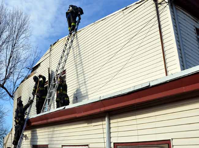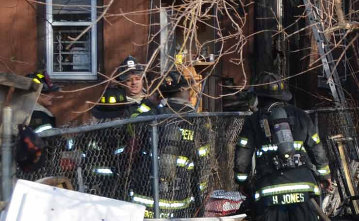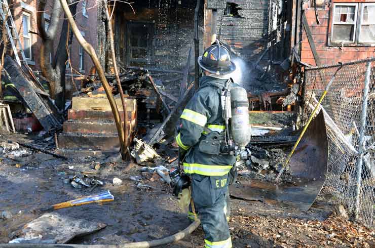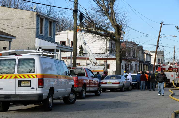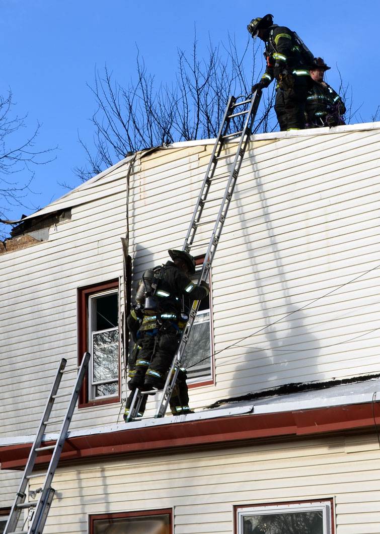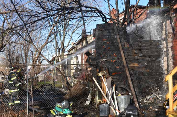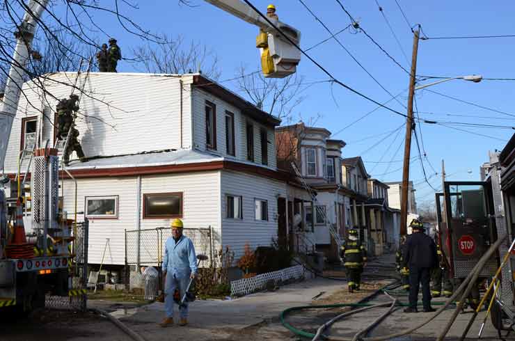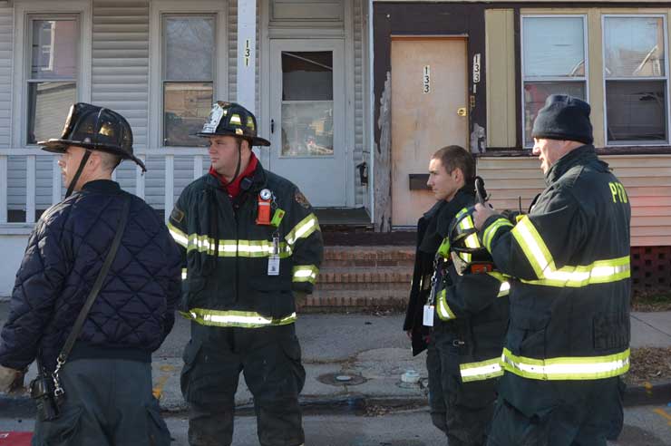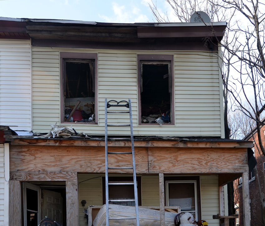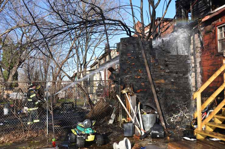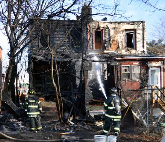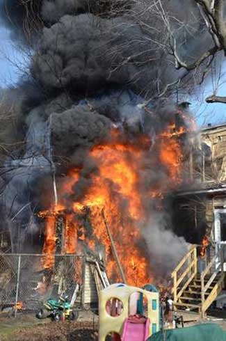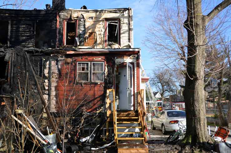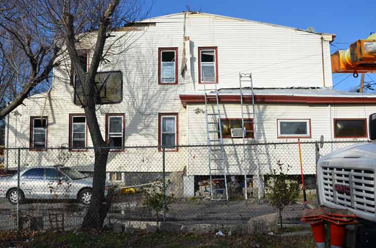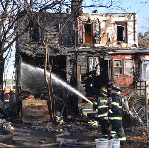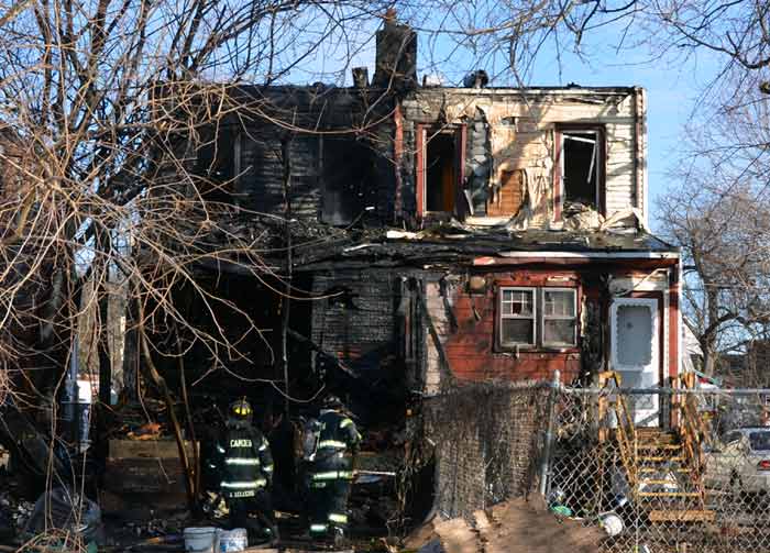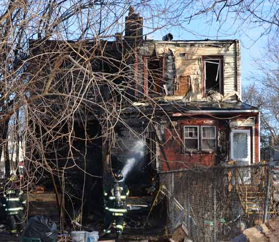Three homes were damaged in the two-alarm blaze that left two families homeless. Click on Image to Enlarge Photo by TED AURIG Click here for more photos by Ted Aurig